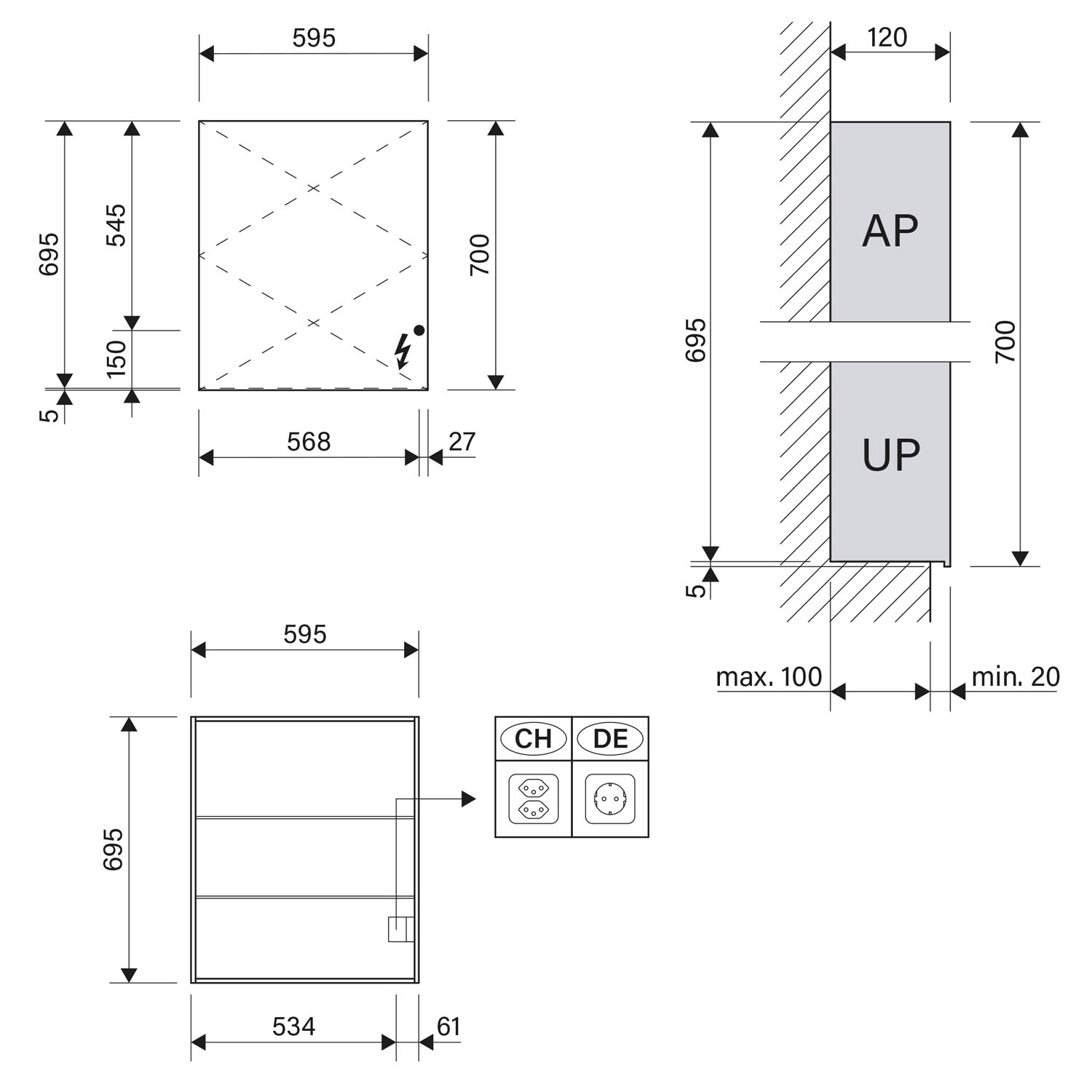 Schneider EASY Spiegelschrank ELC1 60/1/0/SD/R 59,5 x 70 cm, 1 Steckdose rechts, CH