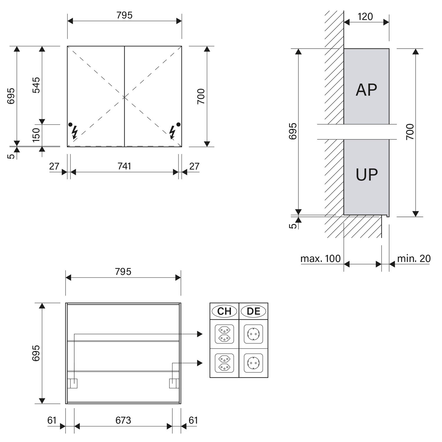- Aufputz- oder Unterputz-Montage, maximale Einbautiefe 10 cm