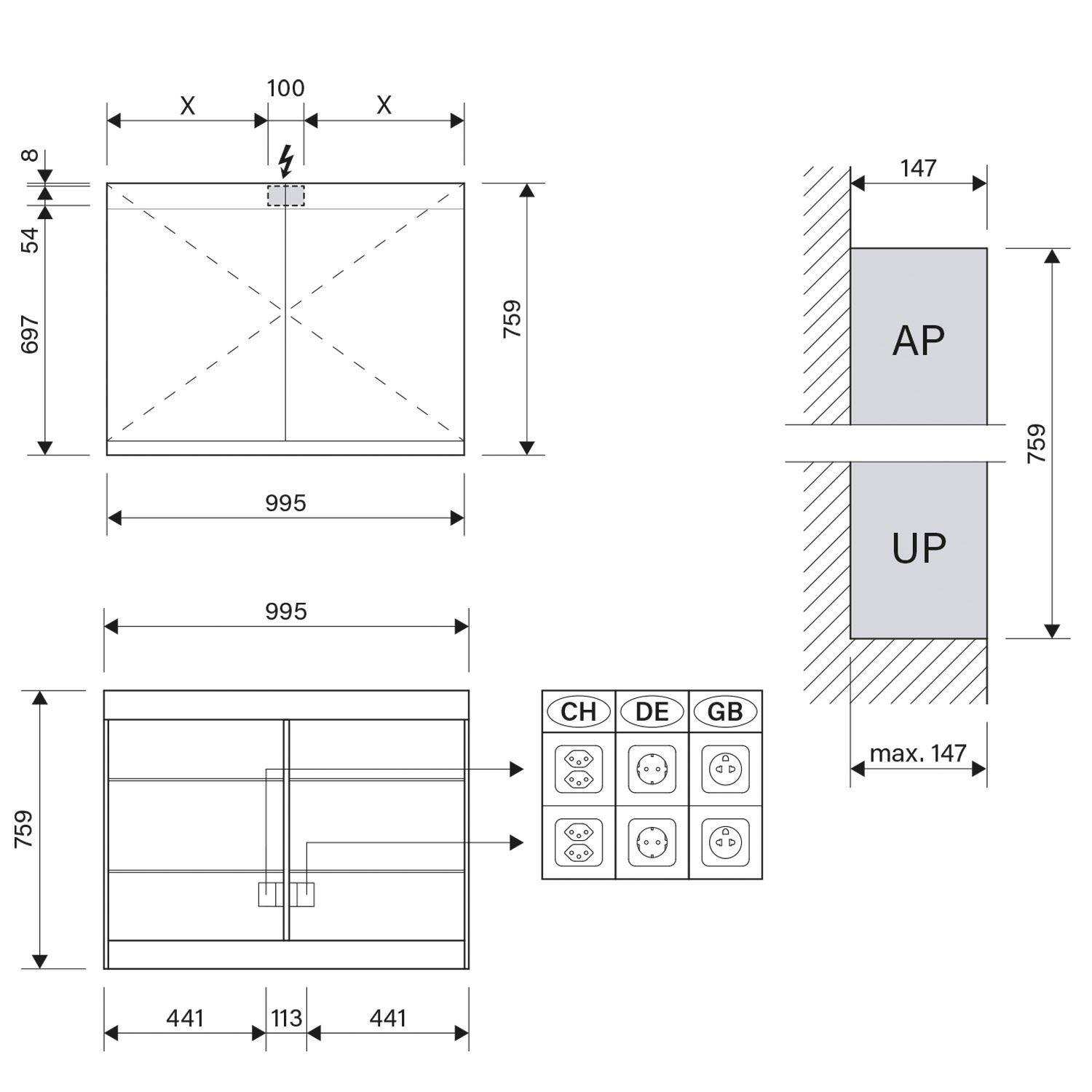 Schneider FILO HCL Spiegelschrank ALS1 100/2/HCL 99,5 x 75,9 cm, DE