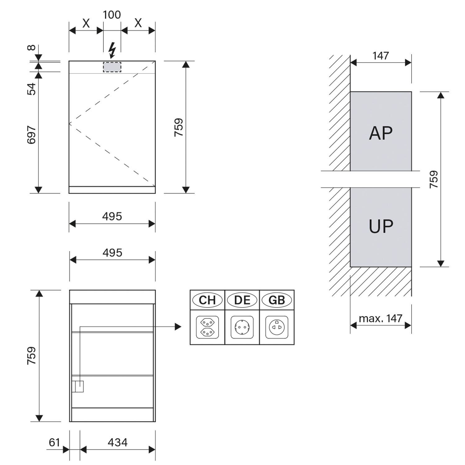 - speziell geeignet für flächenbündige Unterputz-Montage