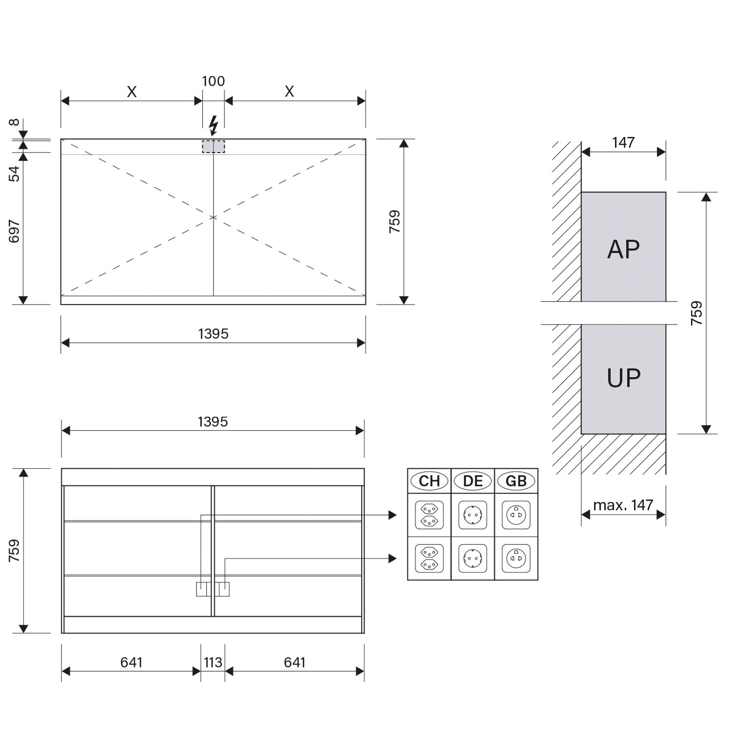 Schneider FILO HCL Spiegelschrank ALS1 140/2/HCL 139,5 x 75,9 cm, CH