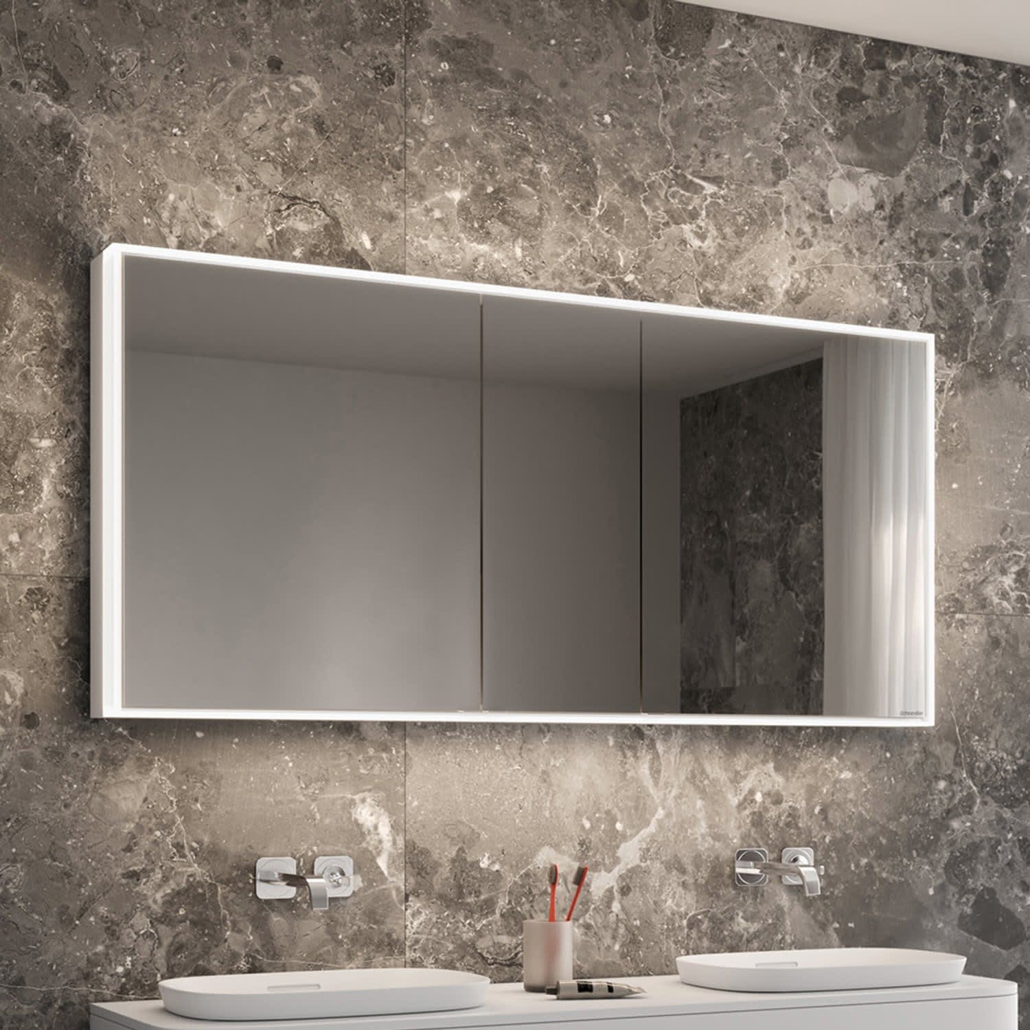 Schneider GLOW classic HCL Spiegelschrank PLU1 150/3/HCL 152,5 x 73,1 cm mit 2 Steckdosen, DE