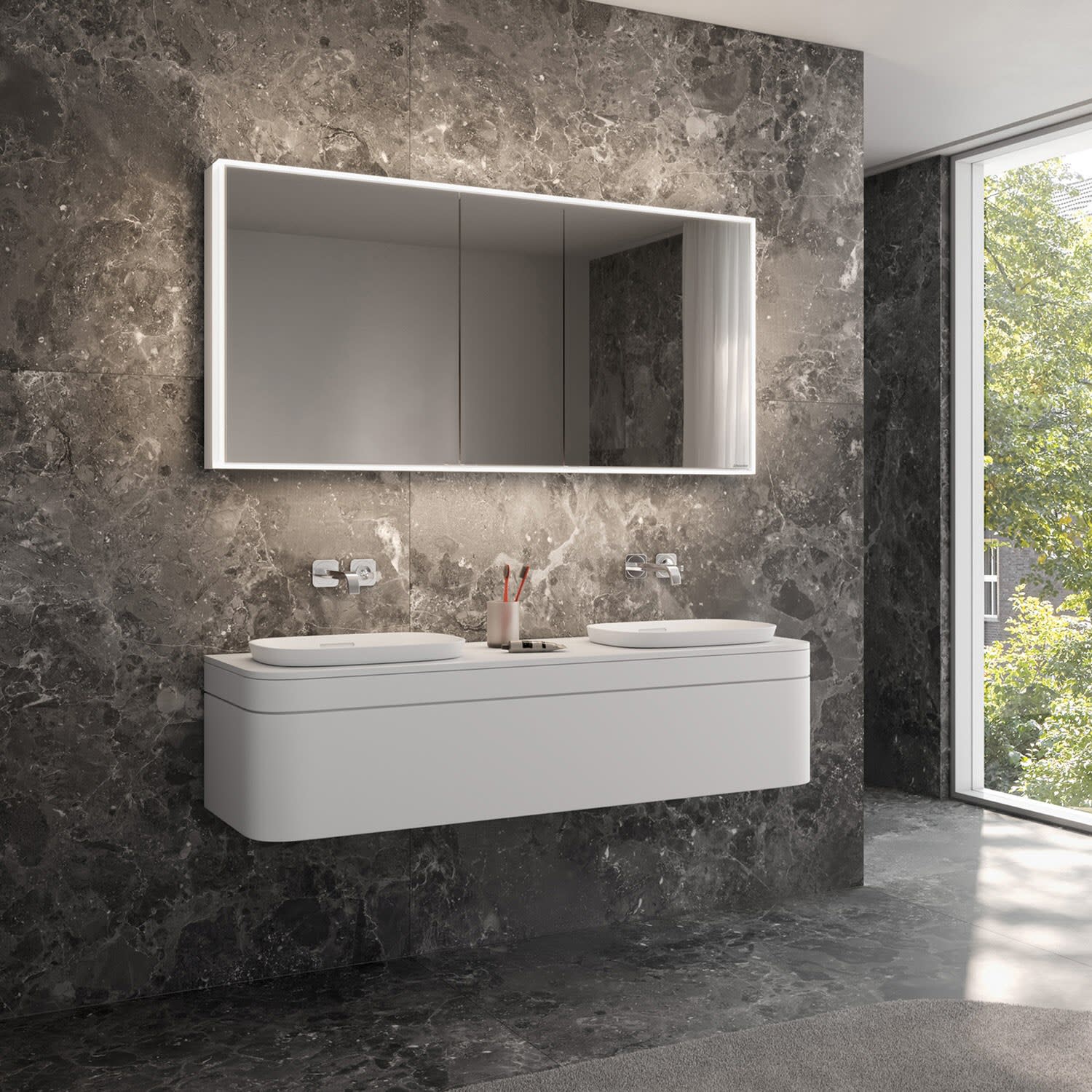 ALLUVION Lapetos Doppel-Waschtisch Laminam® mit Unterschrank 160 cm, mit Hahnloch