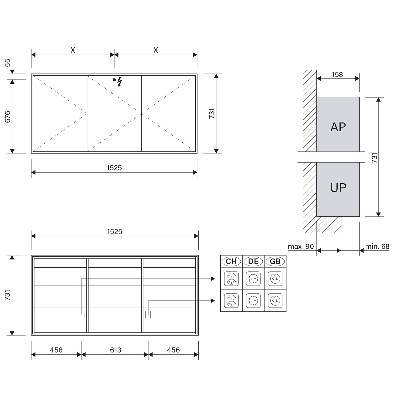 - Aufputz- oder Unterputz-Montage, maximale Einbautiefe 9 cm