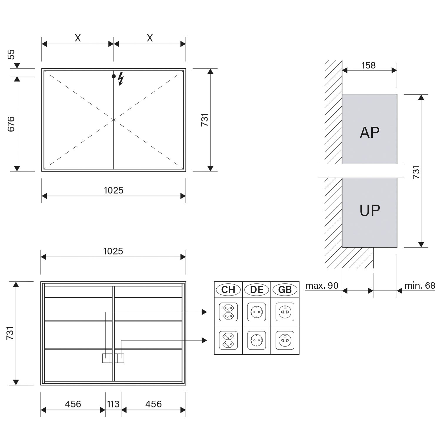 - Aufputz- oder Unterputz-Montage, maximale Einbautiefe 9 cm