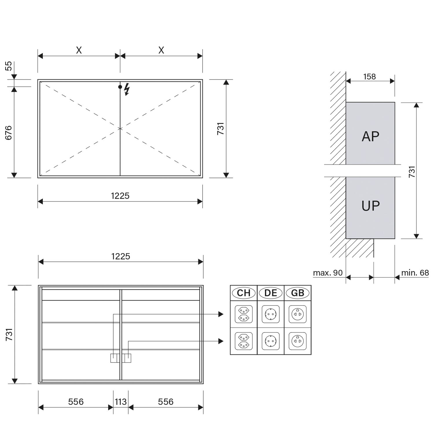 Schneider GLOW classic HCL Spiegelschrank PLU1 120/2/HCL 122,5 x 73,1 cm mit 2 Steckdosen, CH