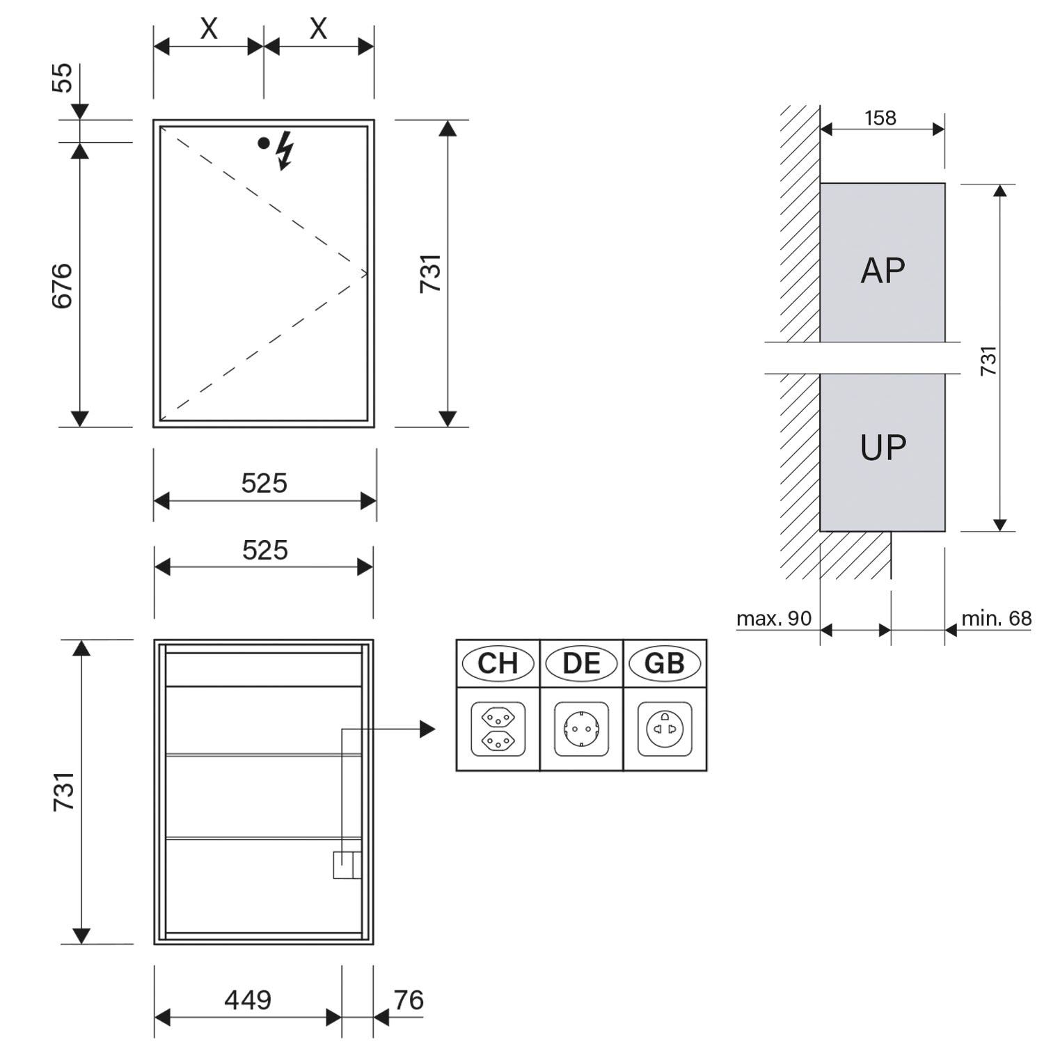 - Aufputz- oder Unterputz-Montage, maximale Einbautiefe 9 cm