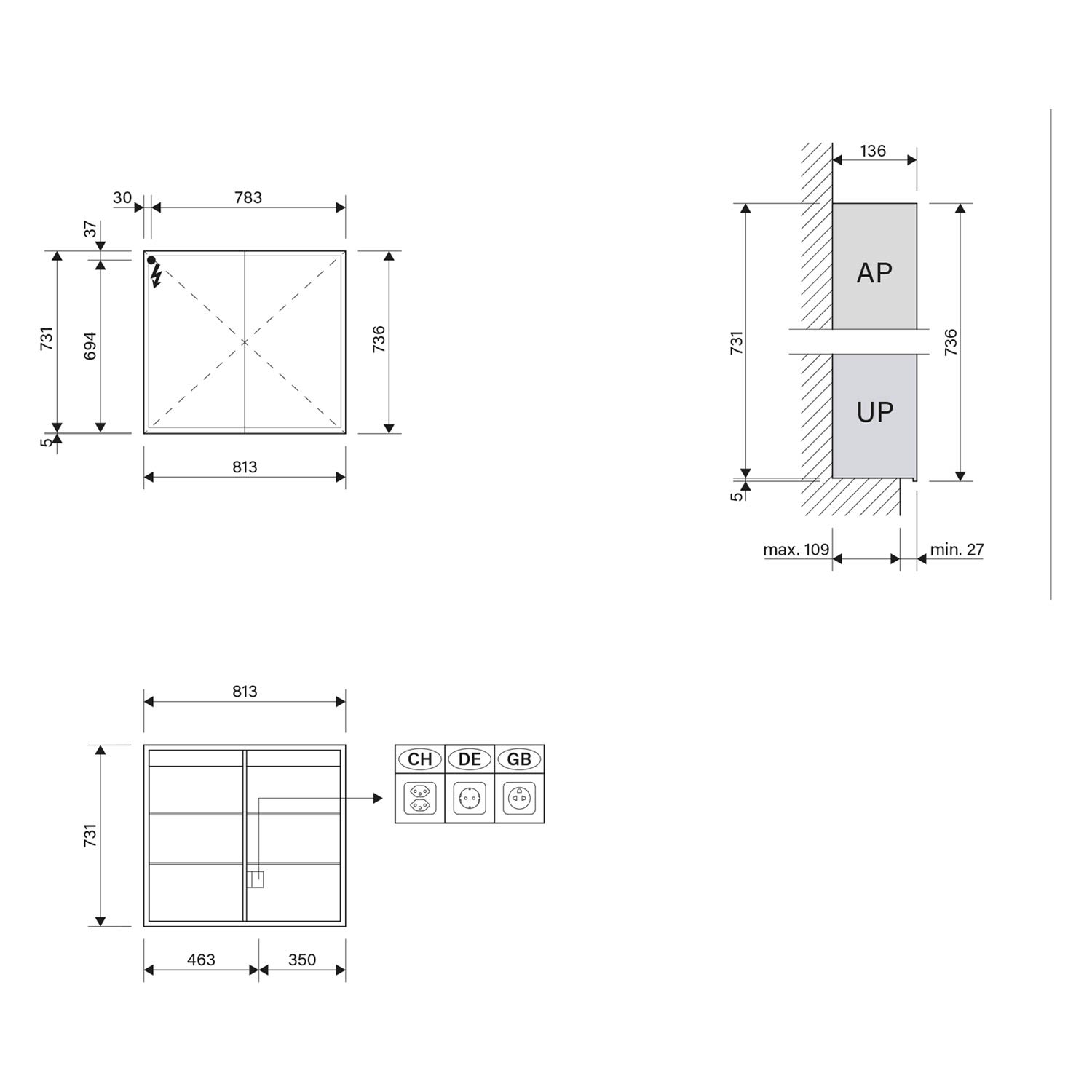 Schneider GLOW D2W Spiegelschrank GLO1 80/2/D2W 81,3 x 73,6 cm, DE