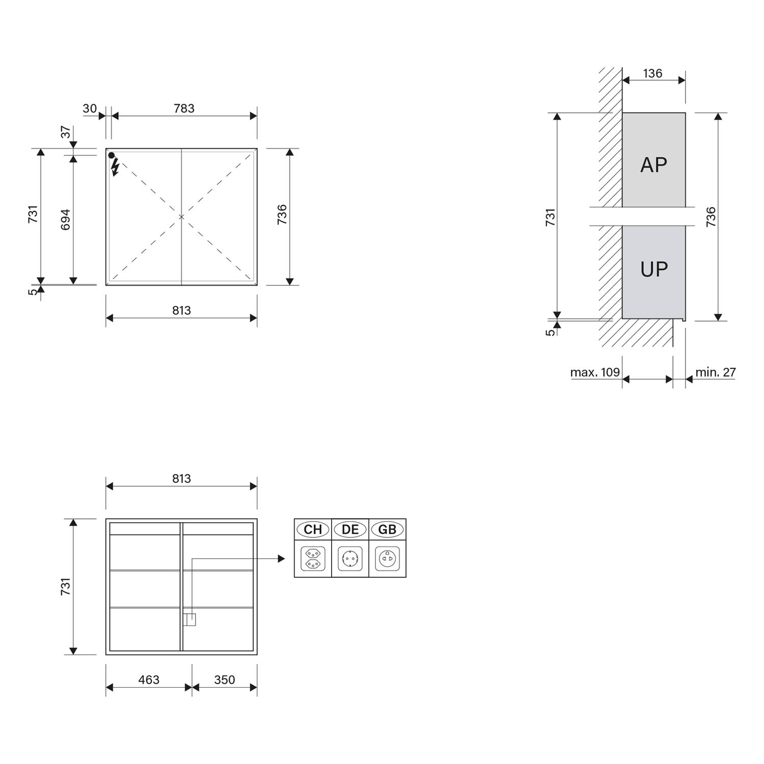 Kronenbach Cube 2.0 Spiegelschrank 80 cm, Unterputz, 2-türig