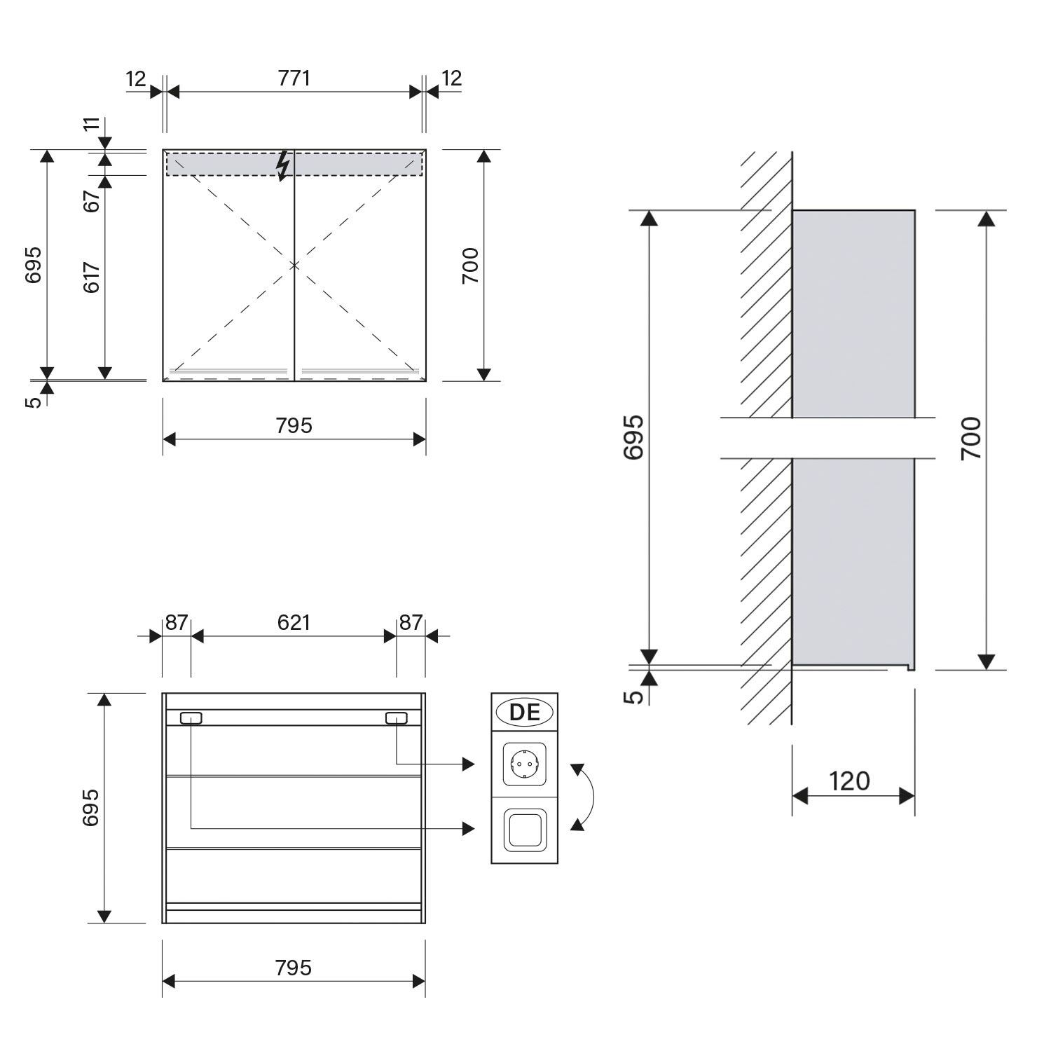 Schneider GRACE LED Spiegelschrank GRLL 80/2/LED 79,5 x 70 cm