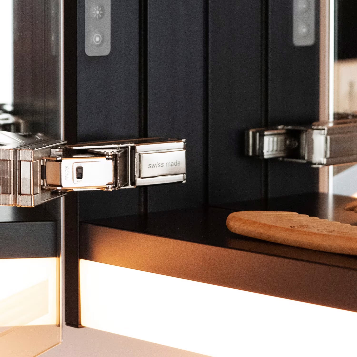 - Taster für Funktionen innen an Seitenprofil oder Steuerung via App