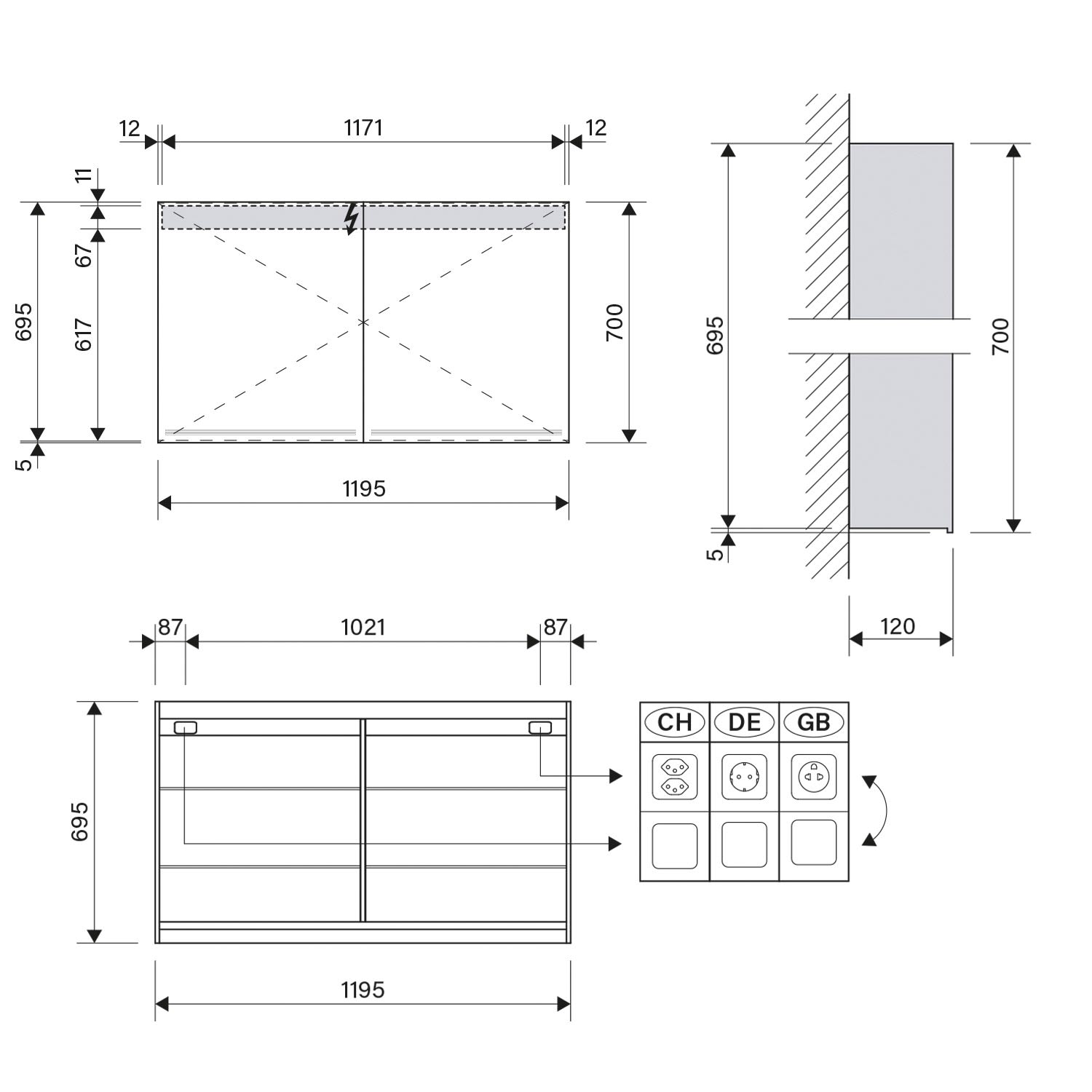Schneider GRACE TW Spiegelschrank GRL 120/2/TW 119,5 x 70 cm, DE