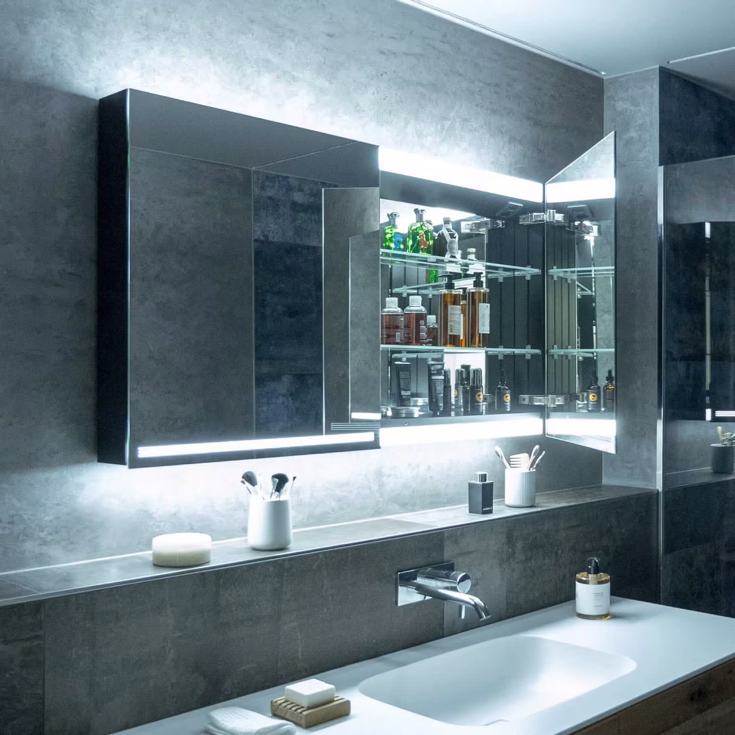 Immer das richtige Licht, morgens, abends, nachts. Sich beleben, sich entspannen. Die Spiegelschränke und Lichtspiegel von Schneider machen Ihr Bad zum Wohlfühlort. Die bezaubernde Entspannung der schönsten Wellness-Welten. GRACE schafft diese Atmosphäre mit feinen Lichtbändern, die dezent im Spiegel eingelassen sind.