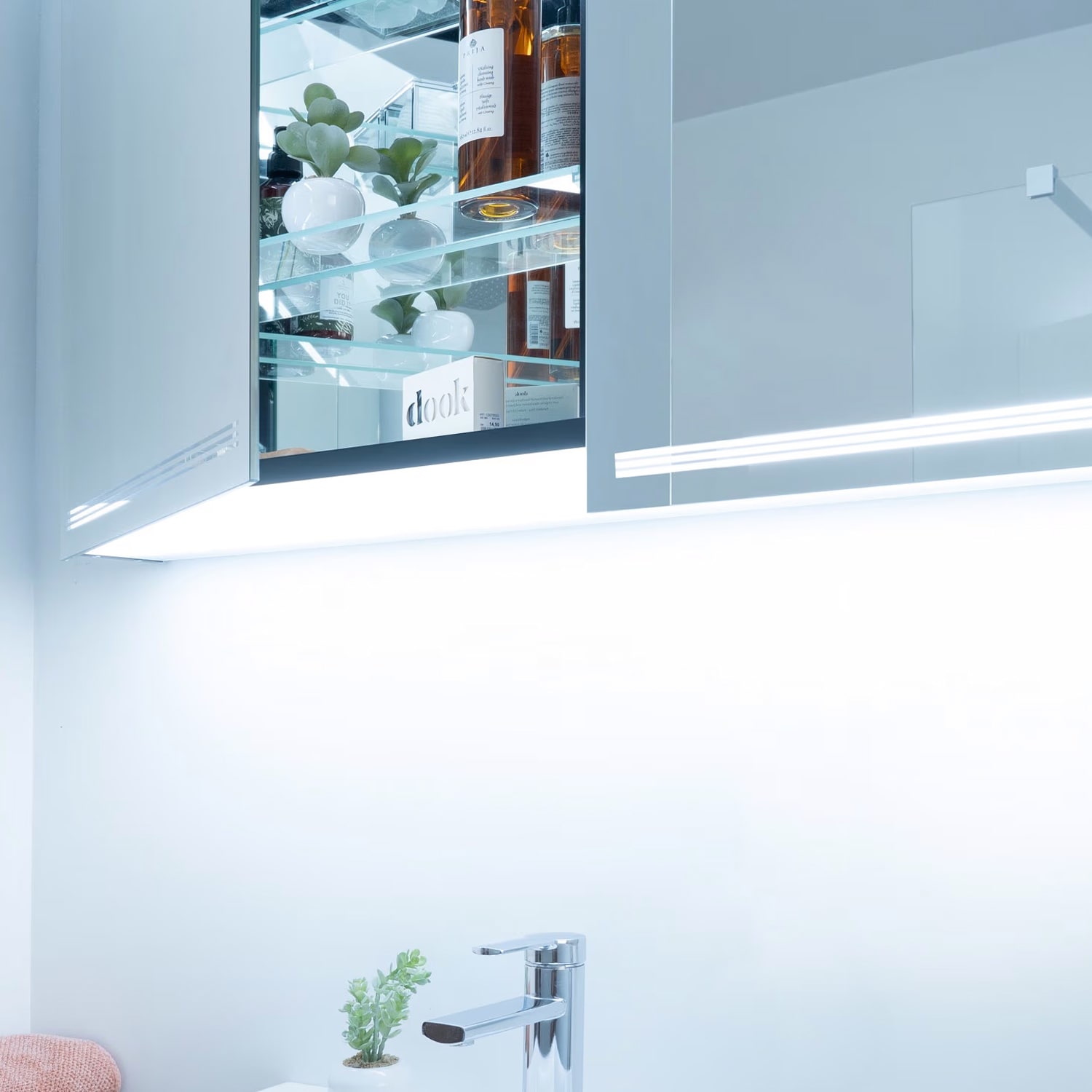 Immer das richtige Licht, morgens, abends, nachts. Sich beleben, sich entspannen. Die Spiegelschränke und Lichtspiegel von Schneider machen Ihr Bad zum Wohlfühlort. Die bezaubernde Entspannung der schönsten Wellness-Welten. GRACE schafft diese Atmosphäre mit feinen Lichtbändern, die dezent im Spiegel eingelassen sind.