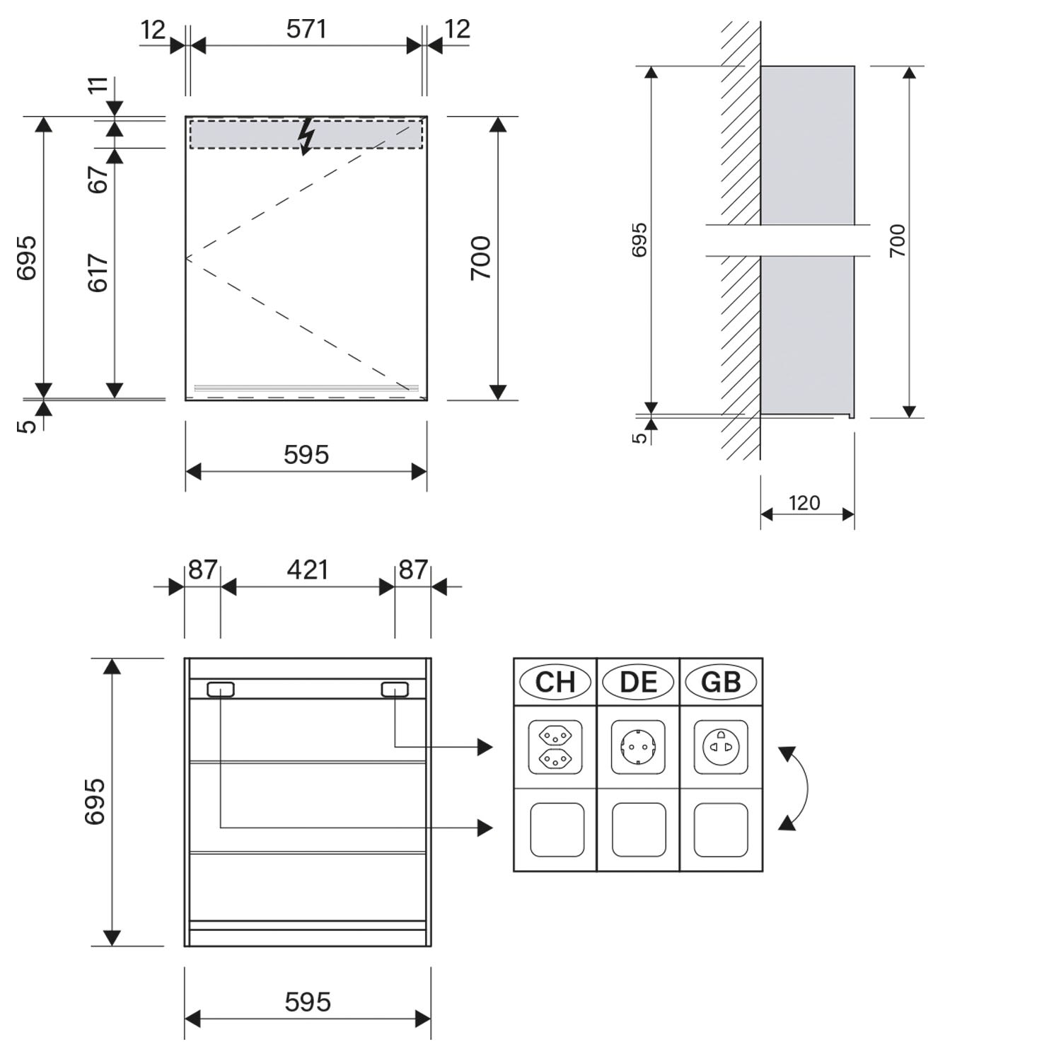 Schneider GRACE TW Spiegelschrank GRL 60/1/TW/R 59,5 x 70 cm, Türanschlag rechts, DE
