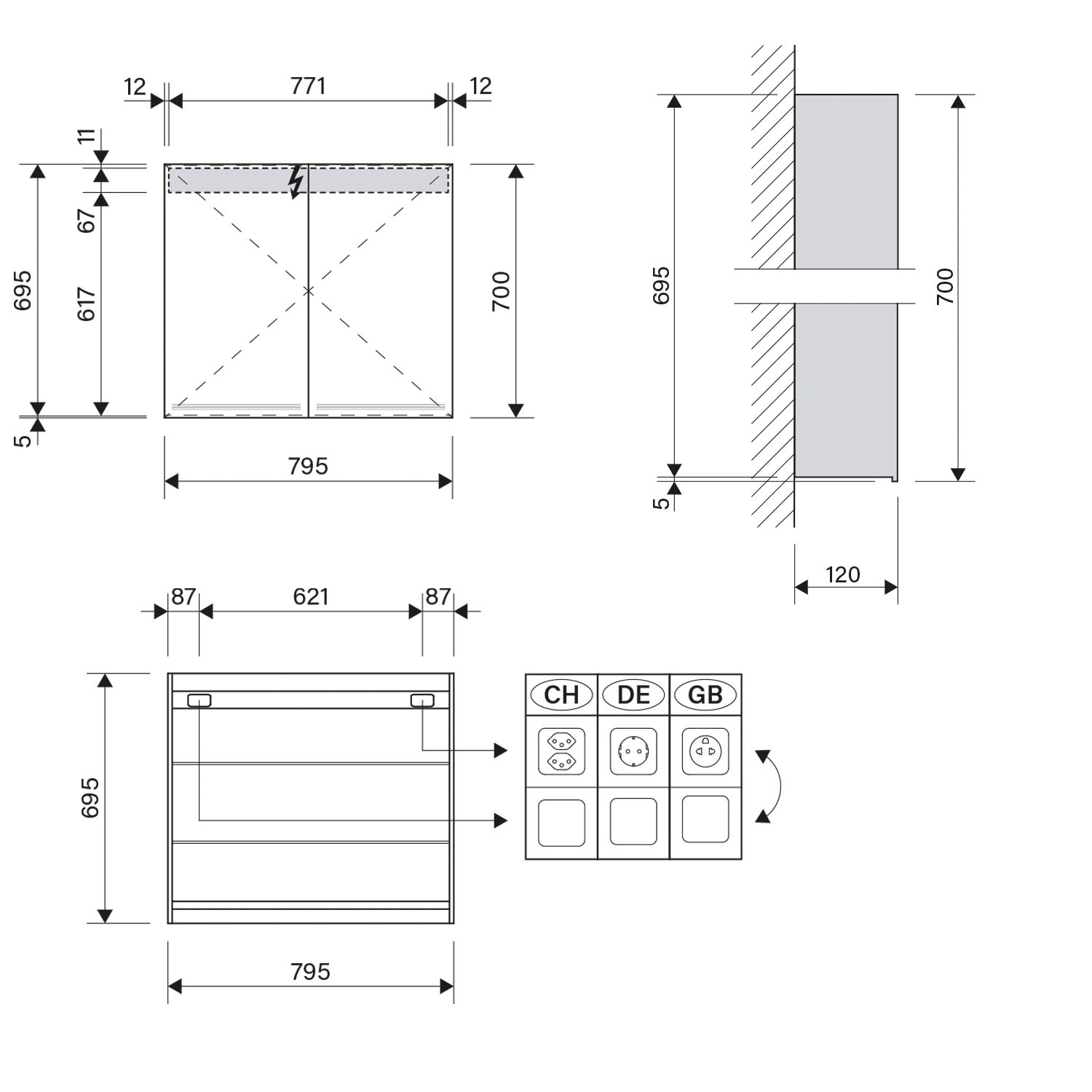 Schneider GRACE TW Spiegelschrank GRL 80/2/TW 79,5 x 70 cm, CH