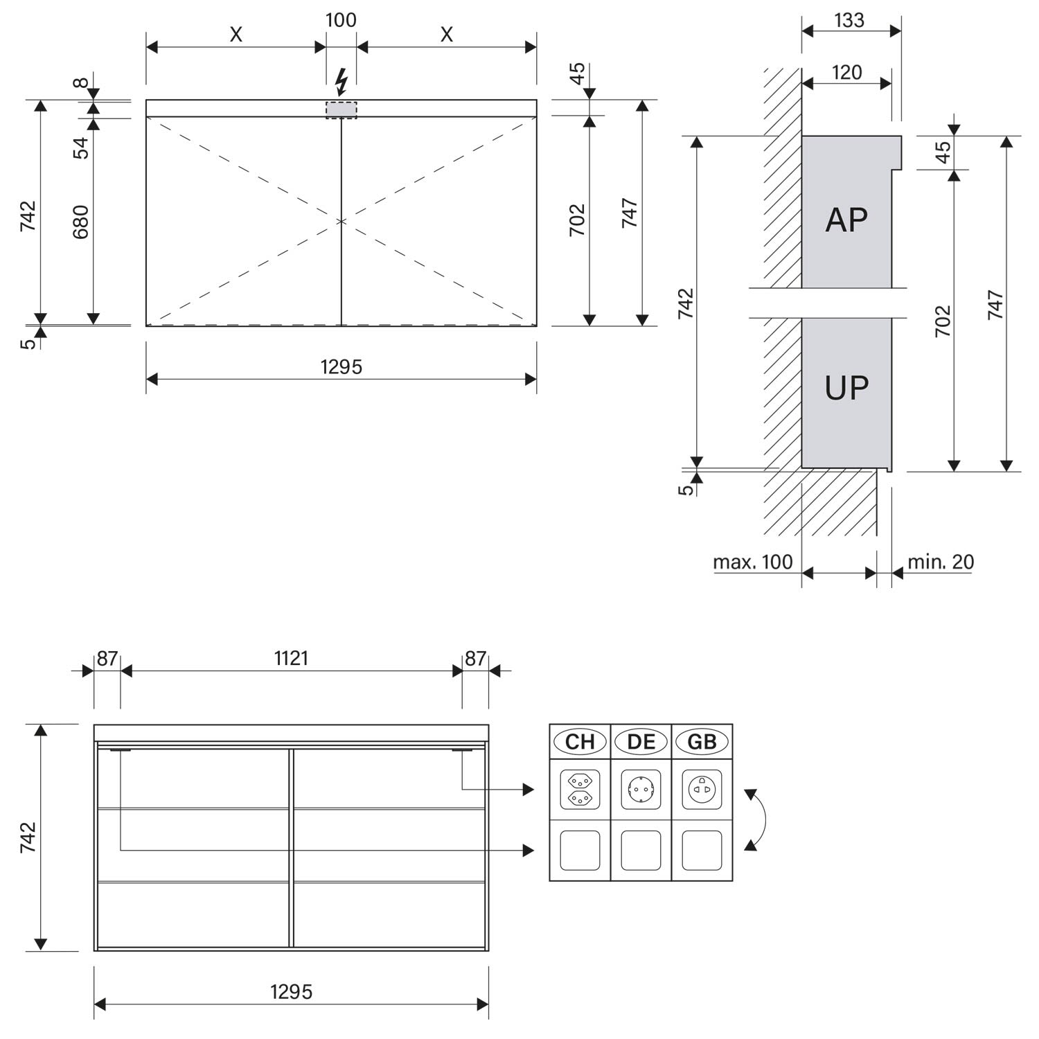 Schneider LOW basic LED Spiegelschrank LOB 130/2/LED 129,5 x 74,7 cm, 4000 K, CH