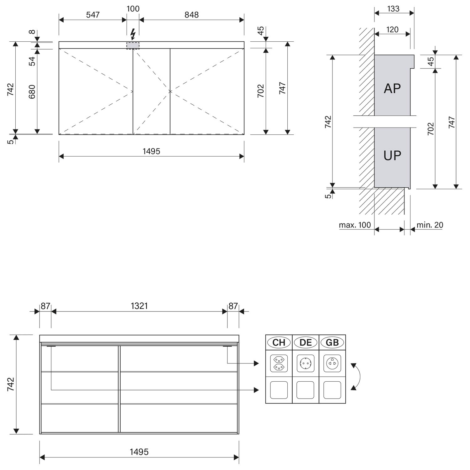 Schneider LOW basic LED Spiegelschrank LOB 150/3/LED 149,5 x 74,7 cm, 3000 K, CH
