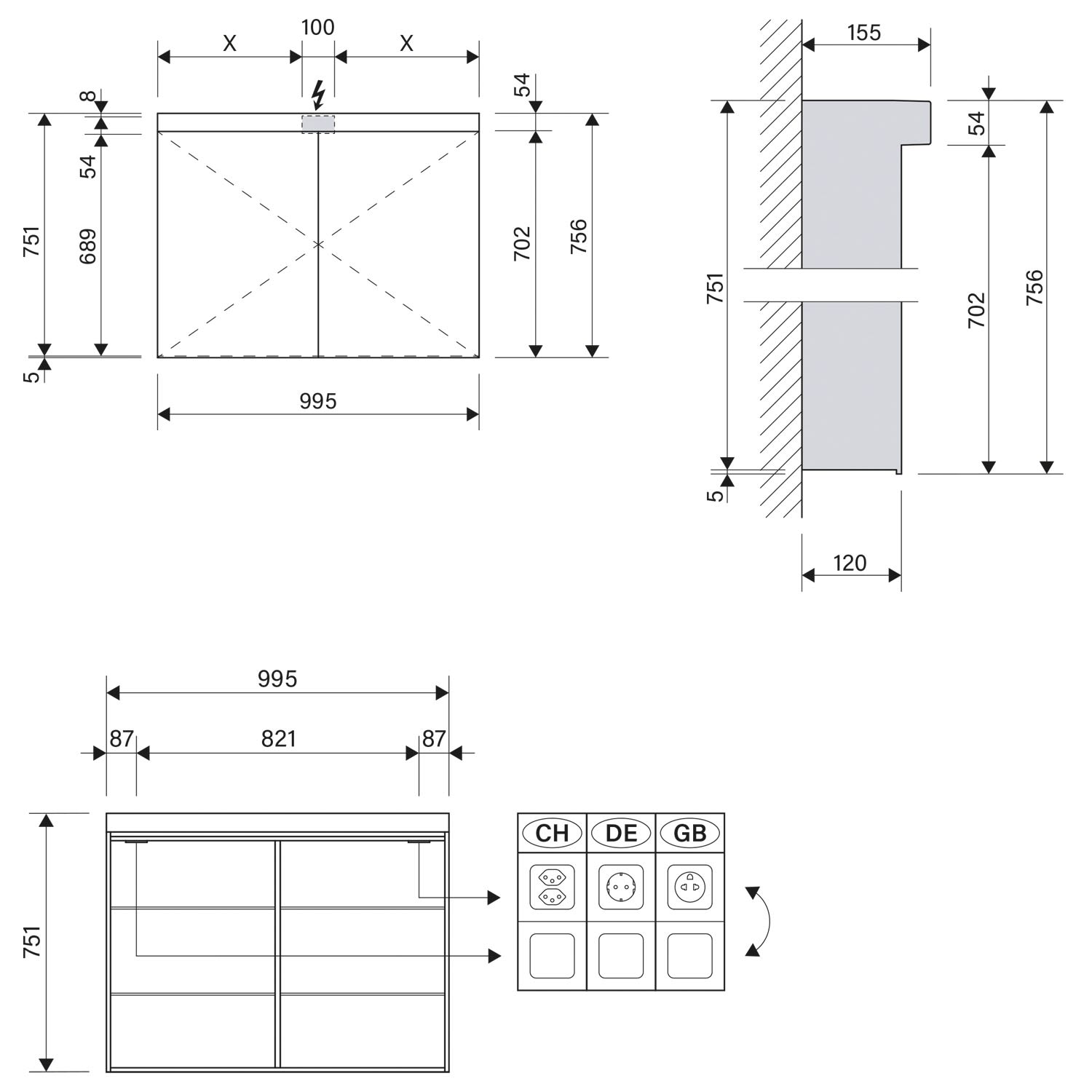 Schneider LOW Line LED Spiegelschrank LOW 100/2/LED 99,5 x 75,6 cm, CH