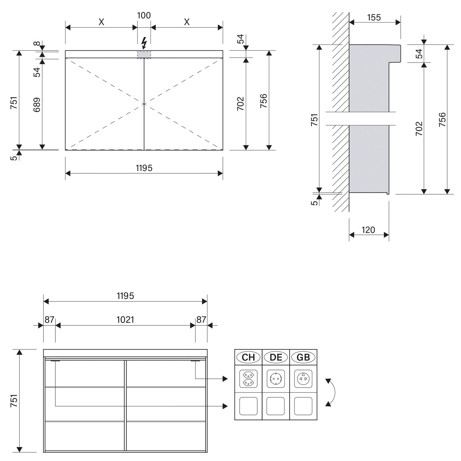 Schneider LOW Line LED Spiegelschrank LOW 120/2/LED 119,5 x 75,6 cm, CH