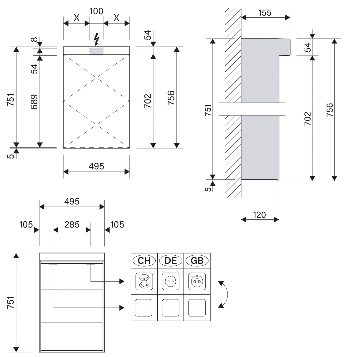 - Türanschlag wechselbar links oder rechts