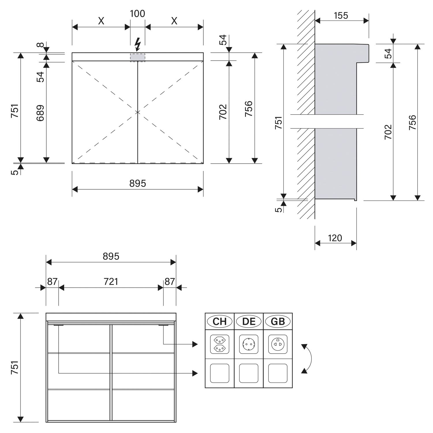 Schneider LOW Line LED Spiegelschrank LOW 90/2/LED 89,5 x 75,6 cm, DE