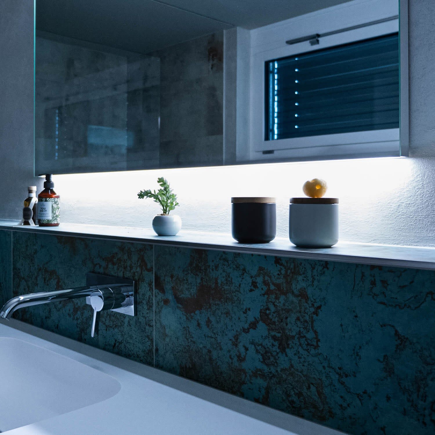 mit Waschplatzbeleuchtung