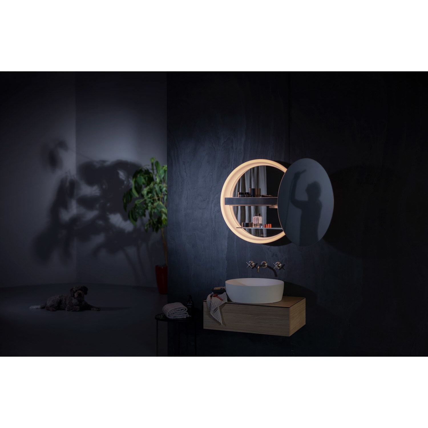 Der Mond ist aufgegangen. Am Himmel hell und klar, in Ihrem Bad schlicht und schön. LUNE ist inspiriert von der Eklipse. Ein feiner Lichtkranz, der entsteht, wenn sich der Mond vollständig vor die Sonne schiebt. Tauchen Sie ein in eine neue Sphäre des Wohlbefindens: Der runde Spiegelschrank – der erste seiner Art – besticht durch eine klare Form, stimmiges Licht mit Dim2Warm-Funktion und hochwertige Materialien.