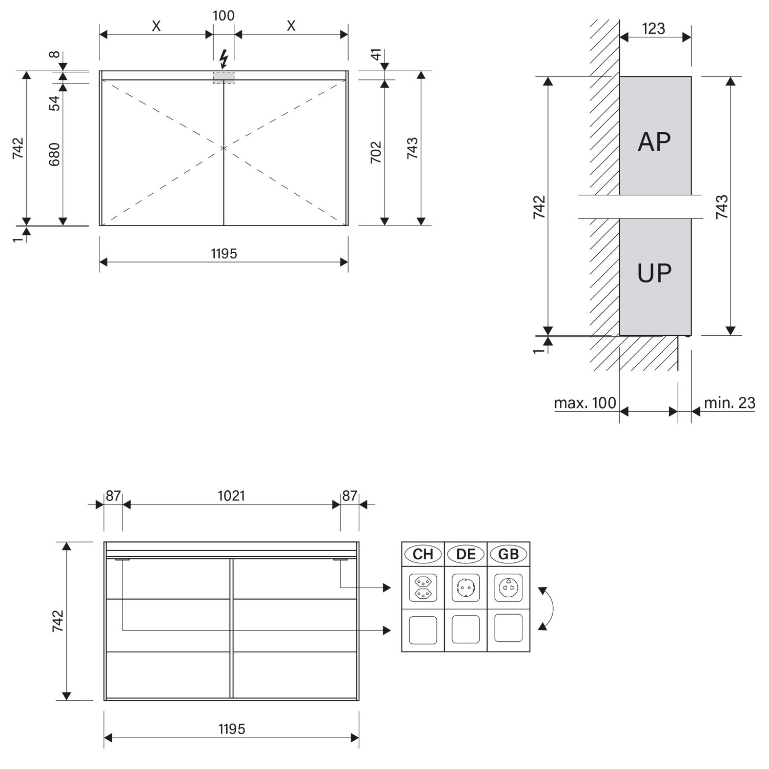 Schneider OBJECT Line Comfort LED Spiegelschrank OLC1 120/2/LED 119,5 x 74,2 cm, 3000 K, DE