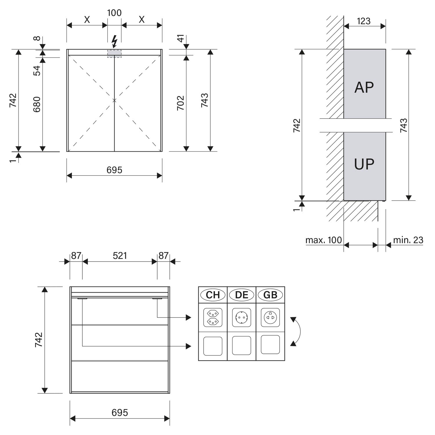 - Aufputz- oder Unterputz-Montage, maximale Einbautiefe 10 cm