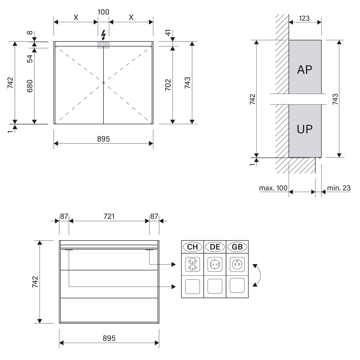 Schneider OBJECT Line Comfort LED Spiegelschrank OLC1 90/2/LED 89,5 x 74,2 cm, 4000 K, CH