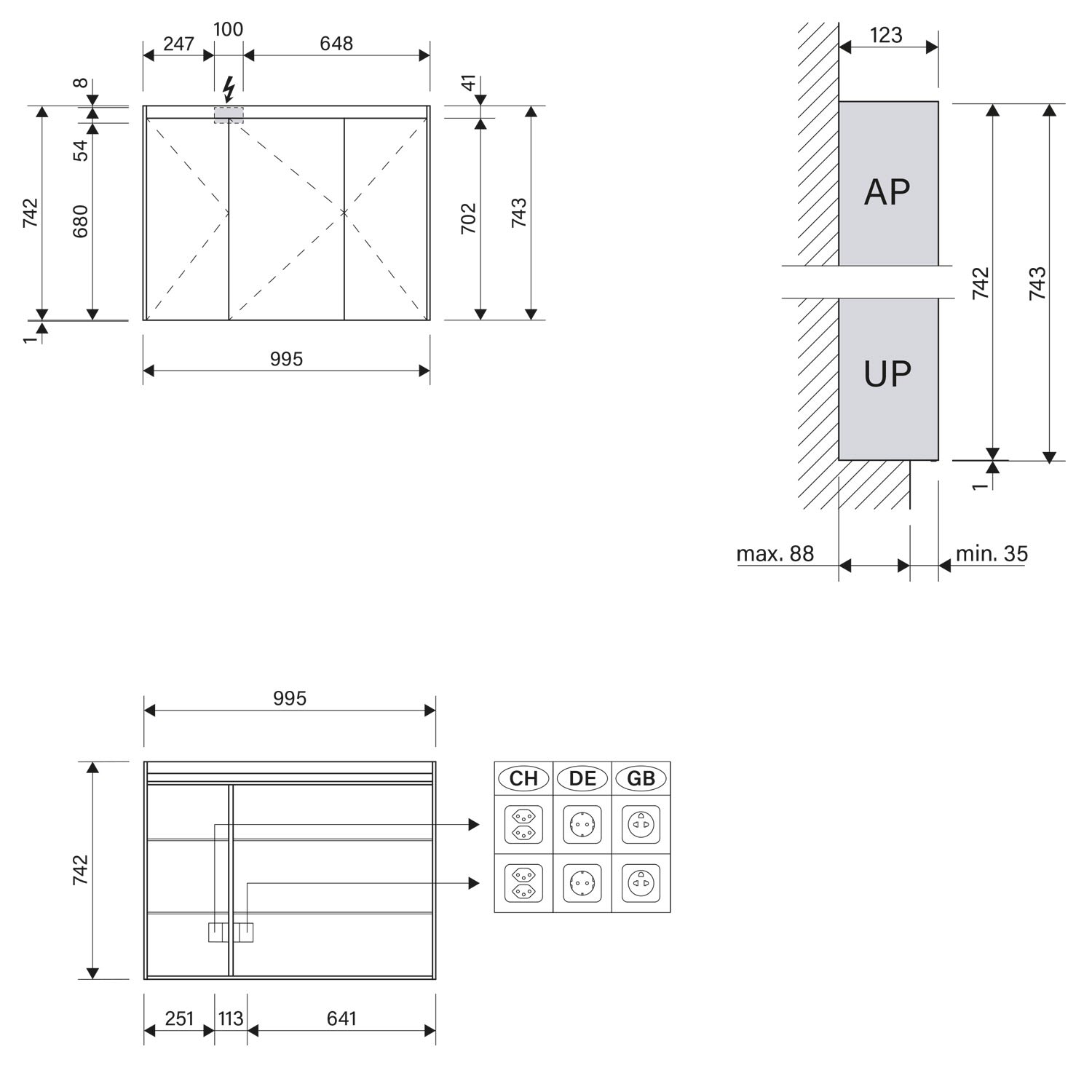 - Aufputz- oder Unterputz-Montage, maximale Einbautiefe 8,8 cm