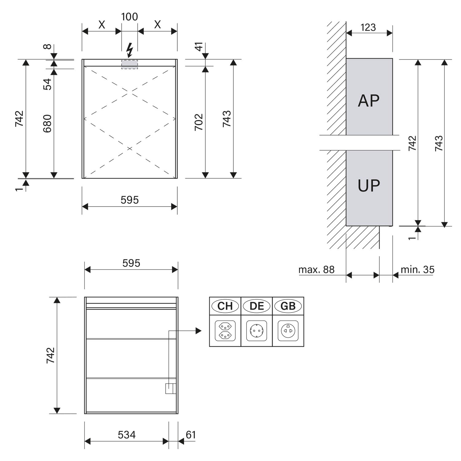 Schneider OBJECT Line Superior LED Spiegelschrank OLS1 60/1/LED/R 59,5 x 74,3 cm, 4000 K, DE
