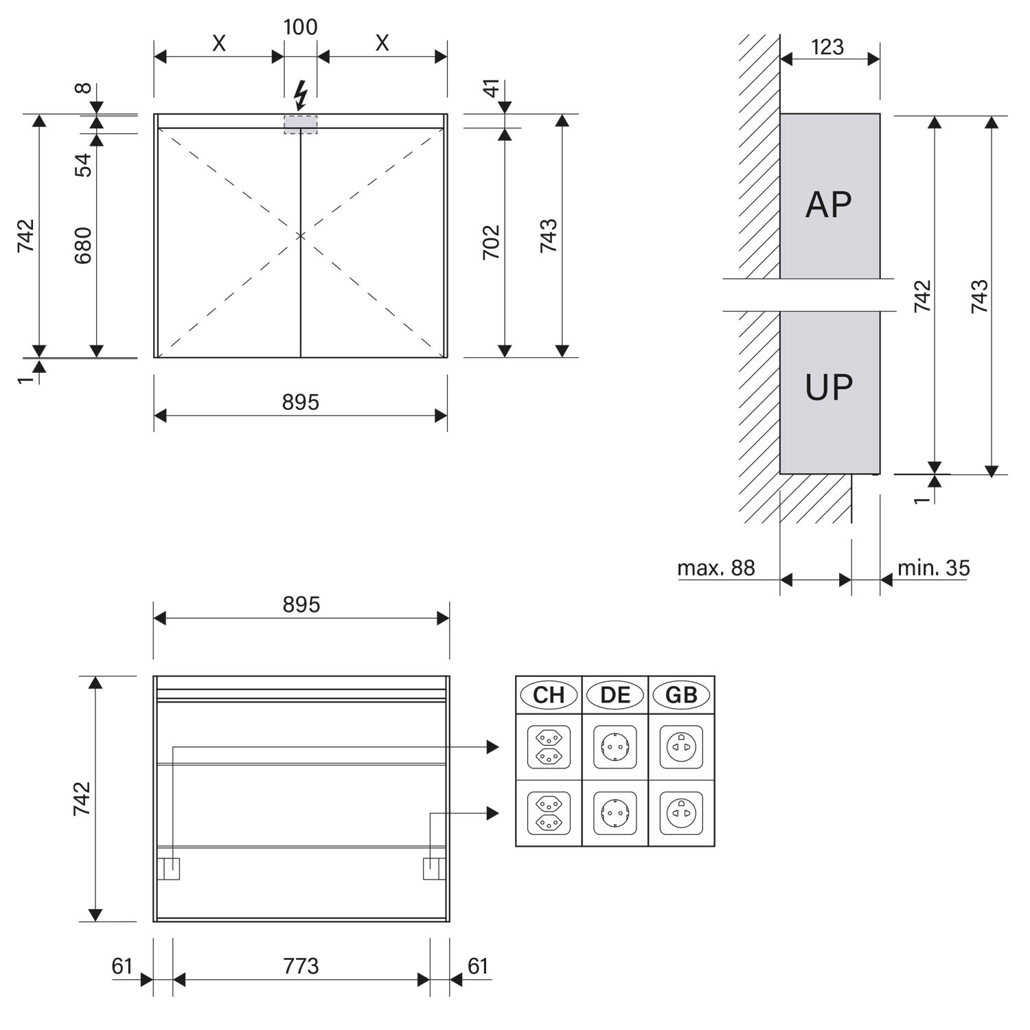 - Aufputz- oder Unterputz-Montage, maximale Einbautiefe 8,8 cm