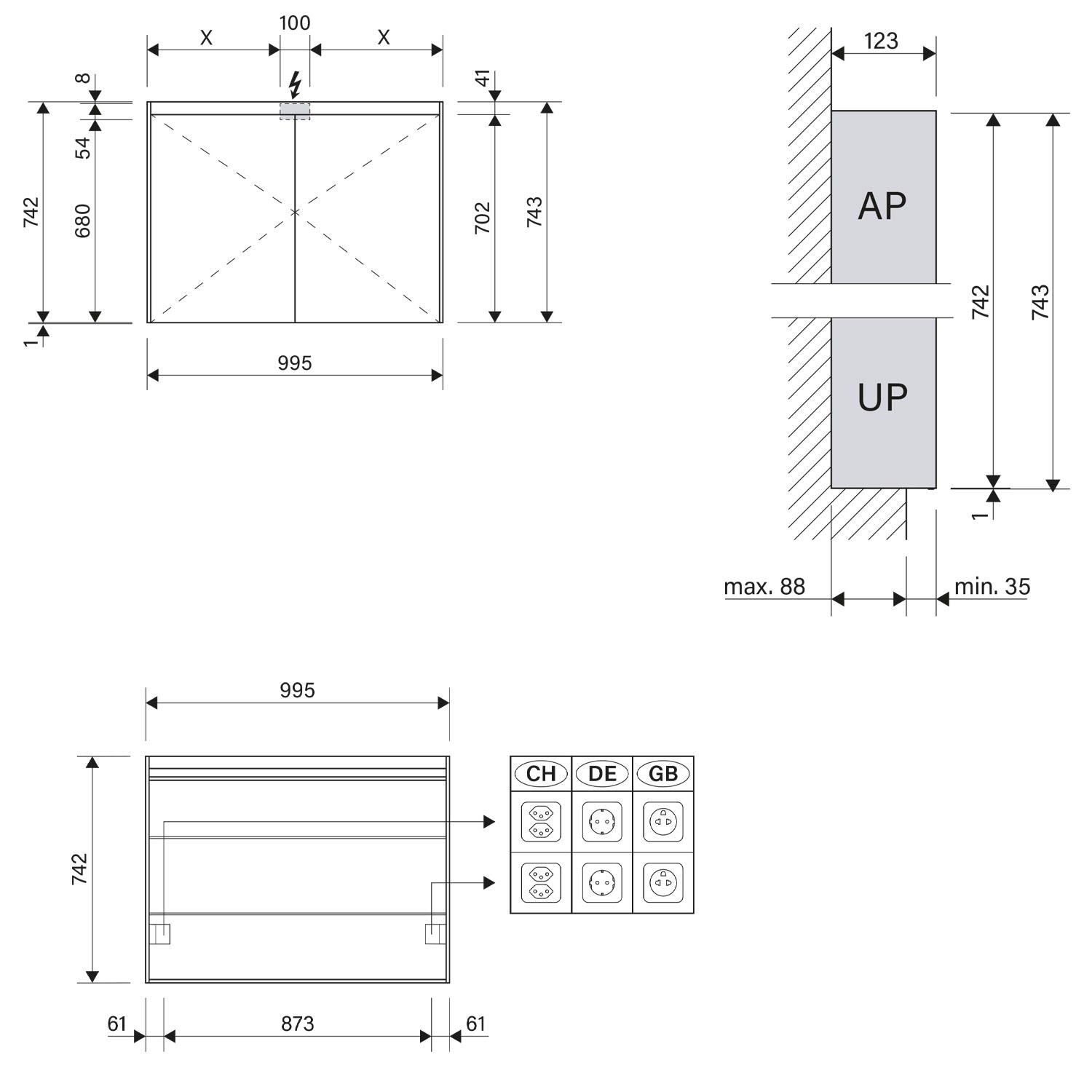 - Aufputz- oder Unterputz-Montage, maximale Einbautiefe 8,8 cm