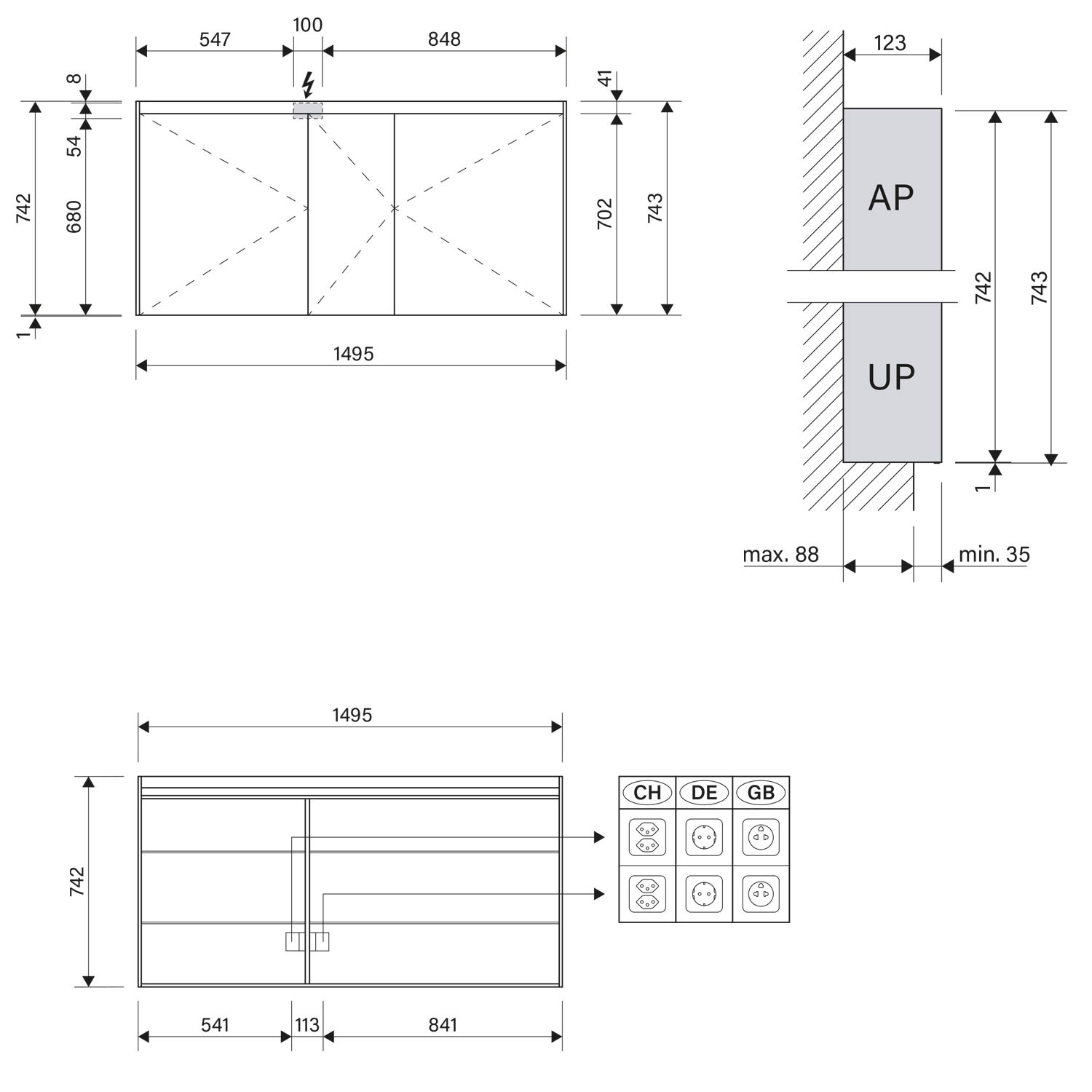 Schneider OBJECT Line Superior LED Spiegelschrank OLS1 150/3/LED 149,5 x 74,3 cm, 4000 K, CH
