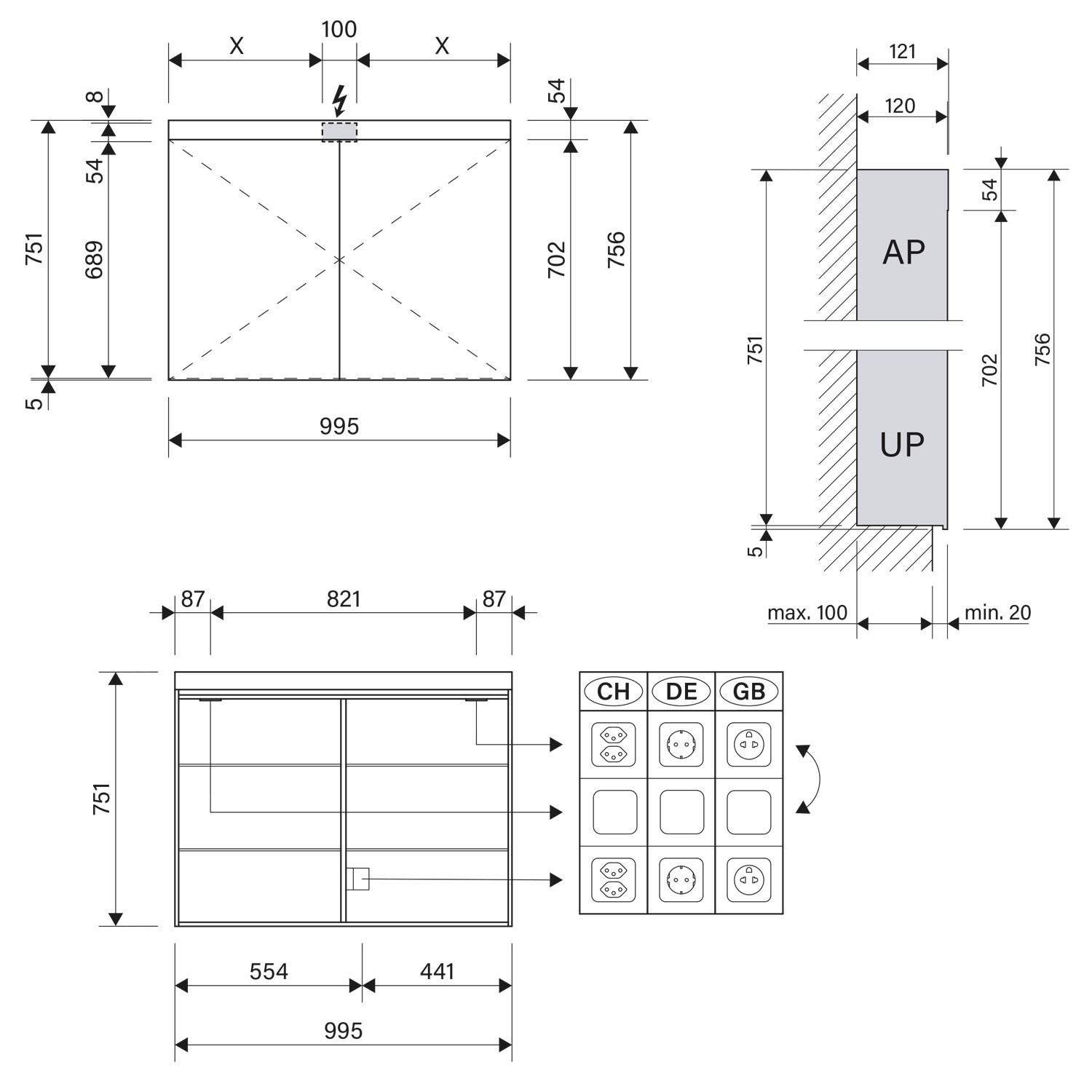 - Aufputz- oder Unterputz-Montage, maximale Einbautiefe 10 cm