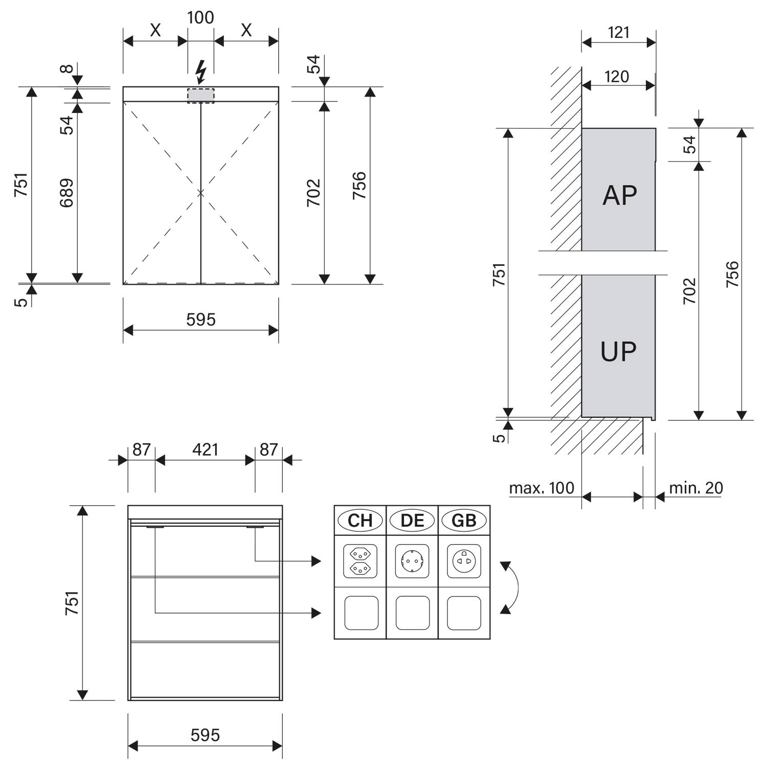 - Aufputz- oder Unterputz-Montage, maximale Einbautiefe 10 cm
