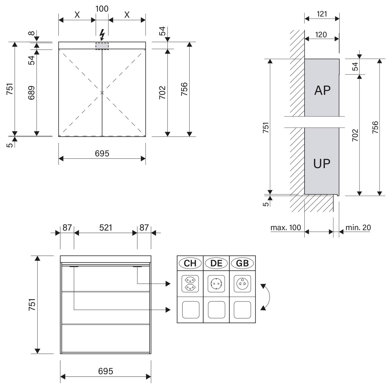 Schneider PATA LED Spiegelschrank PAT 70/2/LED 69,5 x 75,6 cm, 4000 K, CH