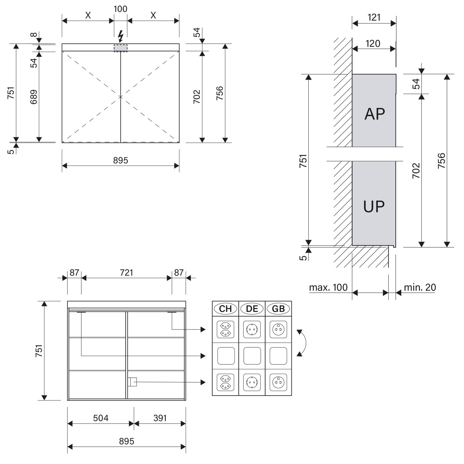Schneider PATA LED Spiegelschrank PAT 90/2/LED 89,5 x 75,6 cm, 4000 K, DE