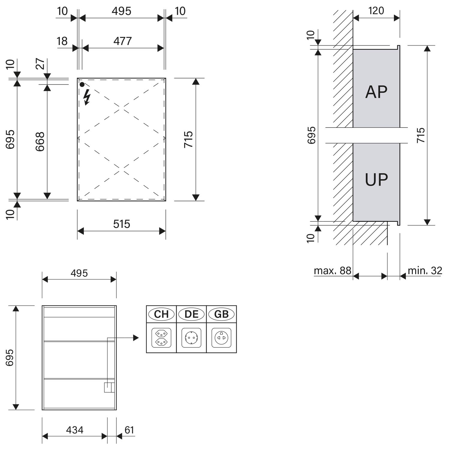 - Aufputz- oder Unterputz-Montage, maximale Einbautiefe 8,8 cm