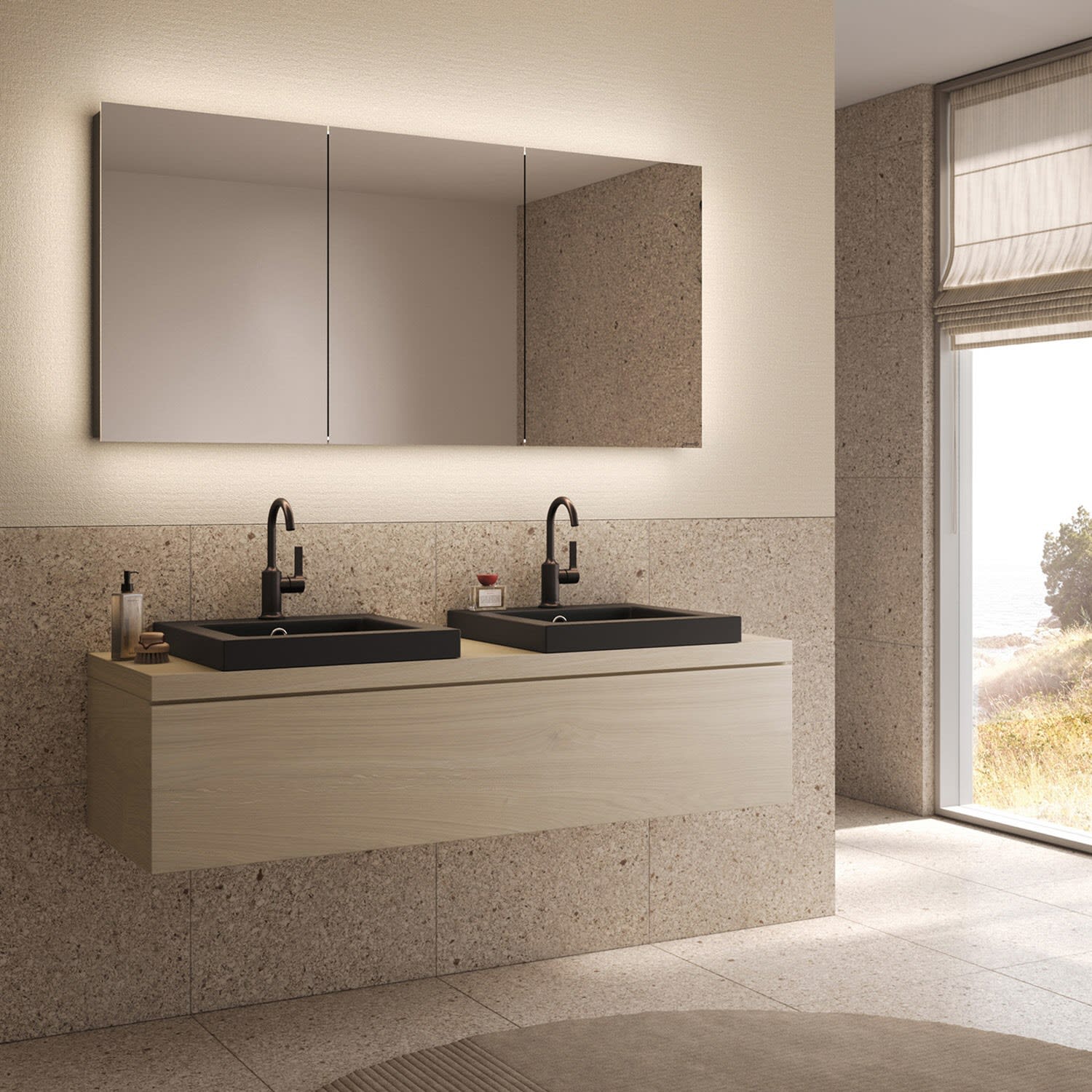 Immer das richtige Licht, morgens, abends, nachts. Sich beleben, sich entspannen. Die Spiegelschränke und Lichtspiegel von Schneider machen Ihr Bad zum Wohlfühlort. Ästhetik und Design, das im Raum zu schweben scheint. Das sanfte, indirekte Licht von STYLE unterstreicht ein modernes und stilvolles Ambiente, für einen Ort der Entspannung.
