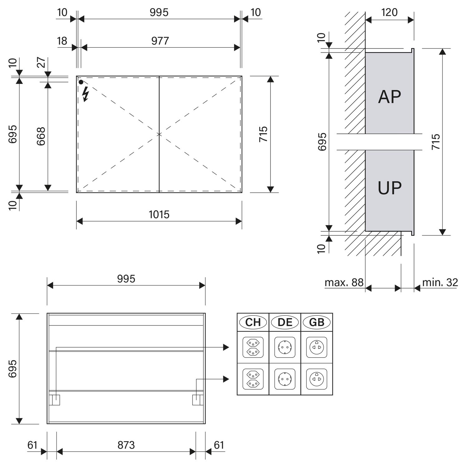 - Aufputz- oder Unterputz-Montage, maximale Einbautiefe 8,8 cm
