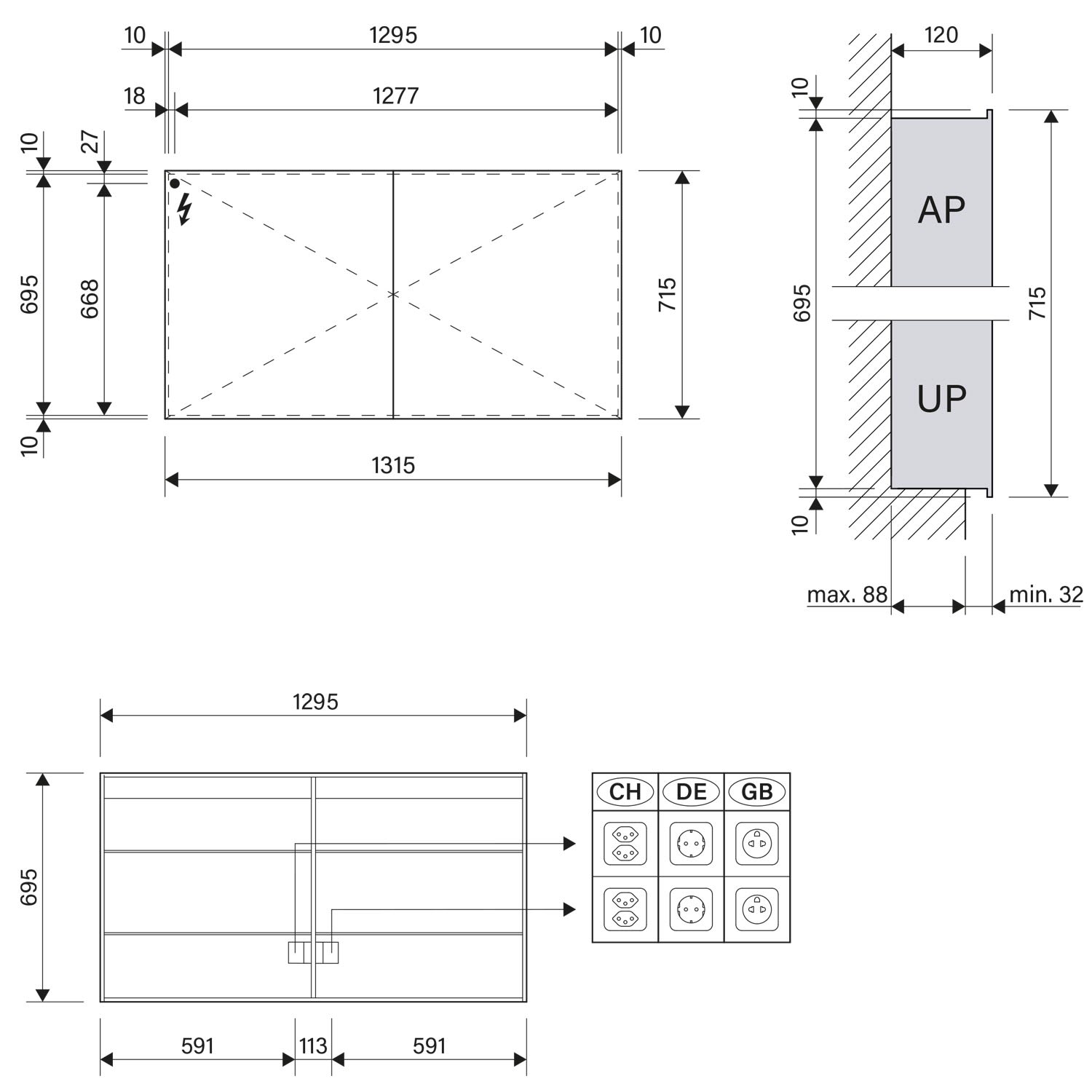 - Aufputz- oder Unterputz-Montage, maximale Einbautiefe 8,8 cm