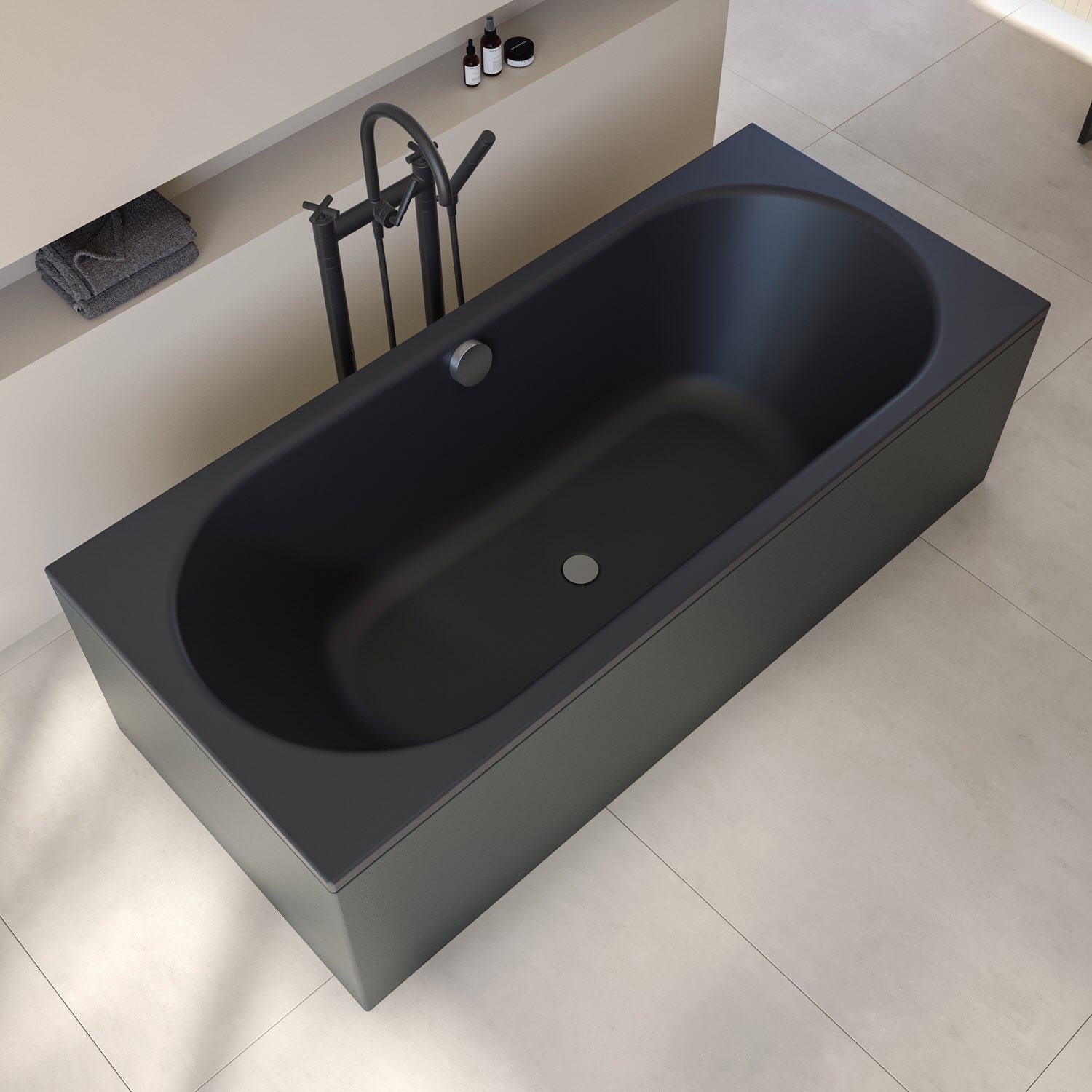 Unsere schwarz matte Doppelbadewanne ist ein Paradebeispiel für puristische Schlichtheit und unaufdringliche Eleganz. Mit ihrem zeitlosen, rechteckigen Design fügt sie sich nahtlos in jedes moderne Badezimmer ein und überzeugt auf ganzer Linie.