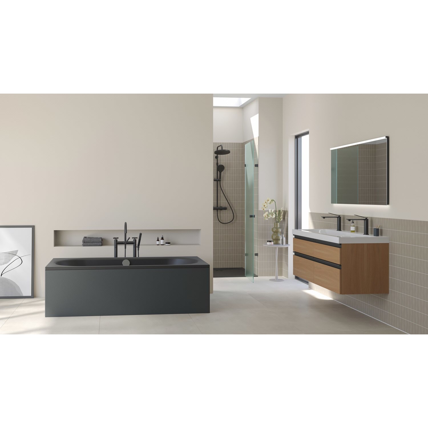 Unsere schwarz matte Doppelbadewanne ist ein Paradebeispiel für puristische Schlichtheit und unaufdringliche Eleganz. Mit ihrem zeitlosen, rechteckigen Design fügt sie sich nahtlos in jedes moderne Badezimmer ein und überzeugt auf ganzer Linie.
