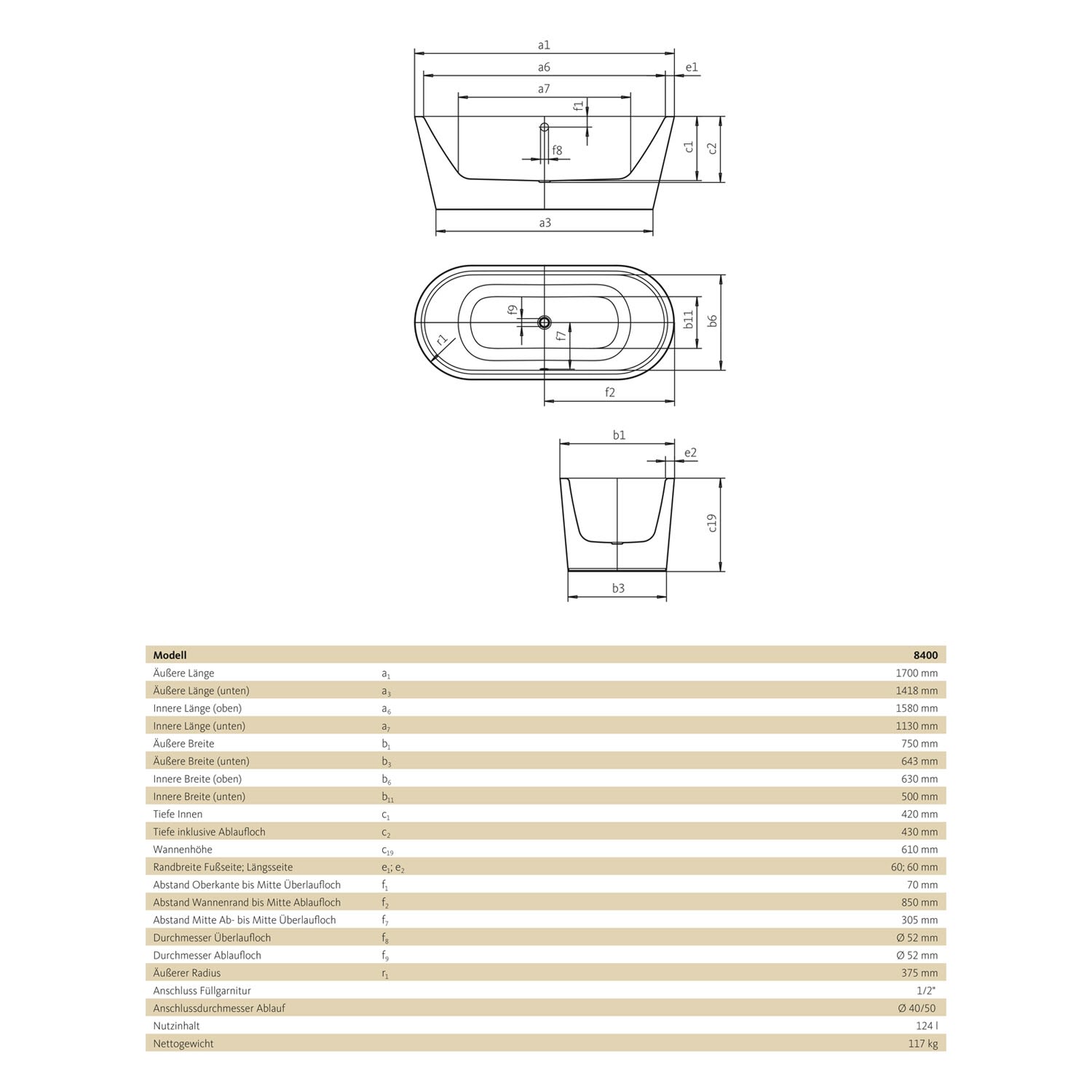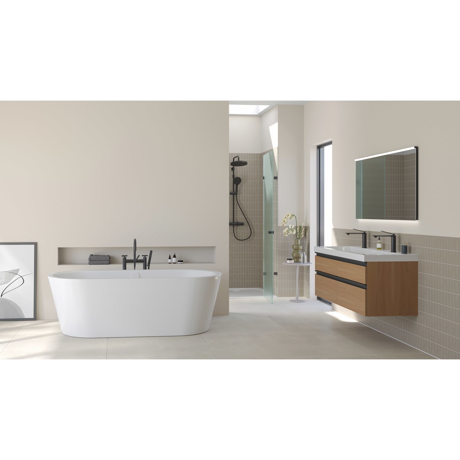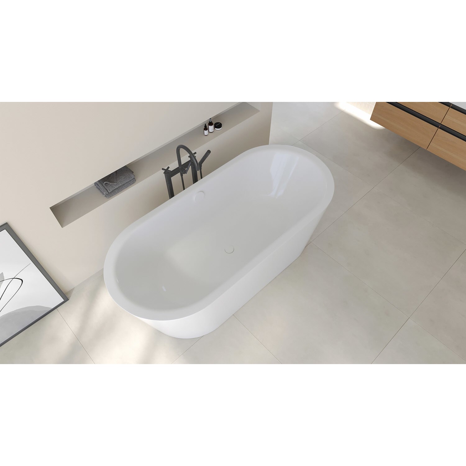 - freistehende Badewanne mit ovaler Kontur und schmalem Wannenrand