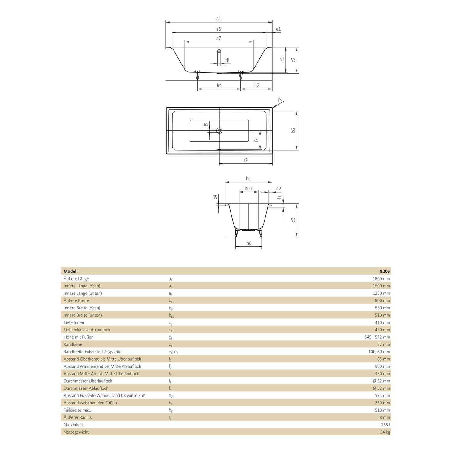 Hinweise: Bei der Badewanne handelt es sich um eine Einbau-Badewanne. Die dargestellte Schürze (Front- und Seitenverkleidung) dient nur zur Visualisierung und ist nicht Teil des Lieferumfangs. Die Ablaufgarnitur und der Ablaufdeckel sind ebenfalls nicht im Lieferumfang enthalten.