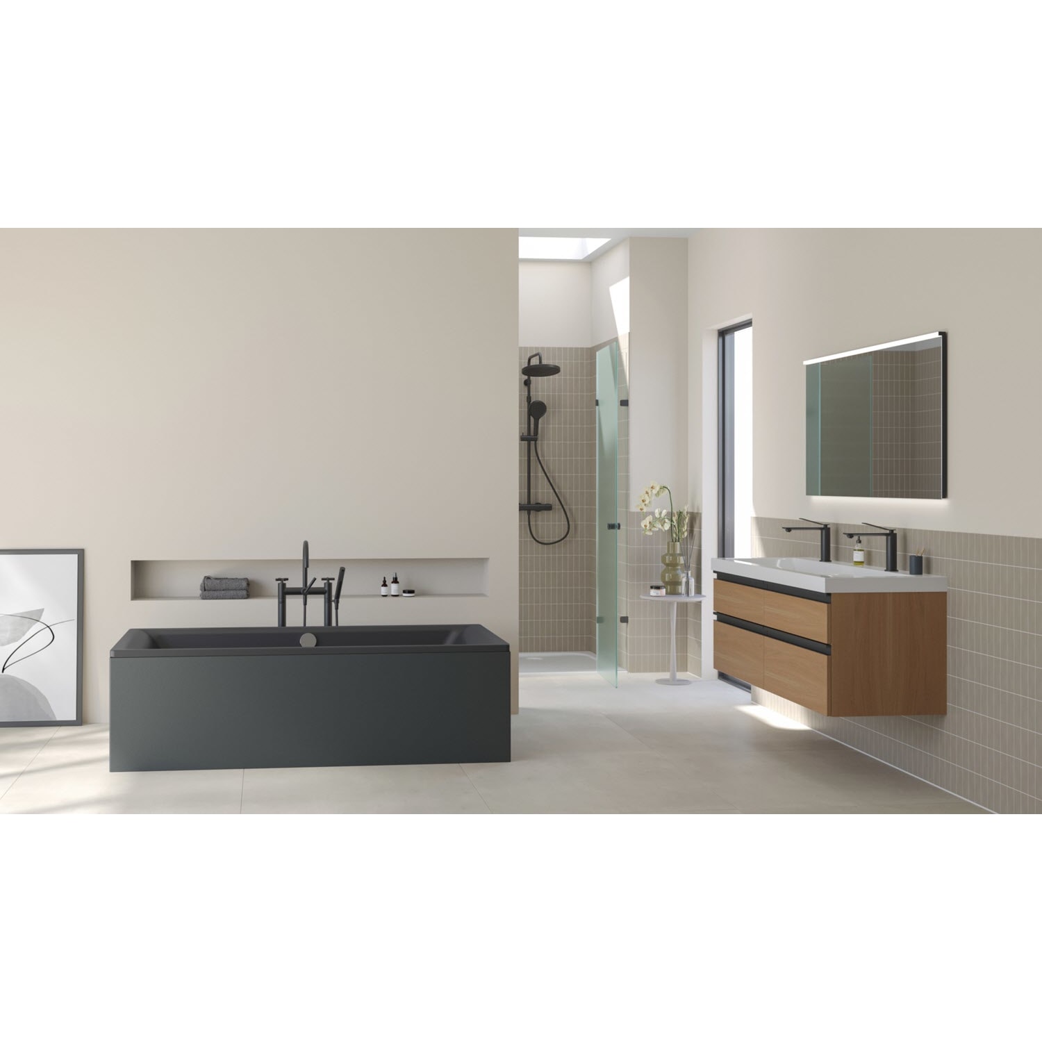 - klassische Viereckvariante mit großzügiger Wannentiefe