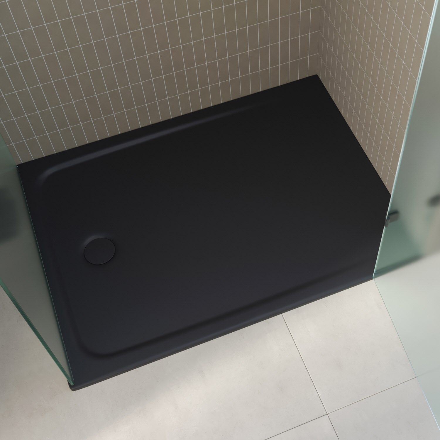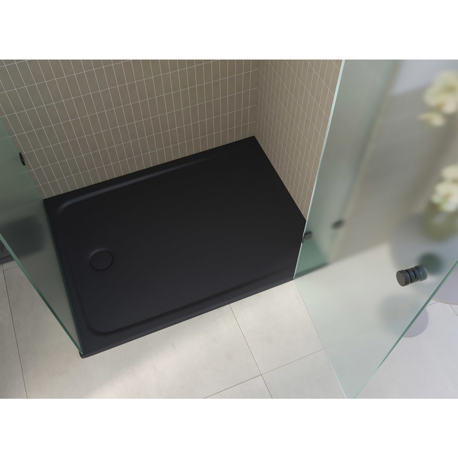 Unsere bodengleiche Duschfläche in schwarz matt ist die ideale Wahl für ein zeitloses und elegantes Badezimmerdesign. Mit einer dezenten Umrandung fügt sie sich nahtlos in Ihr Badkonzept ein und verleiht Ihrem Raum eine harmonische Ästhetik.